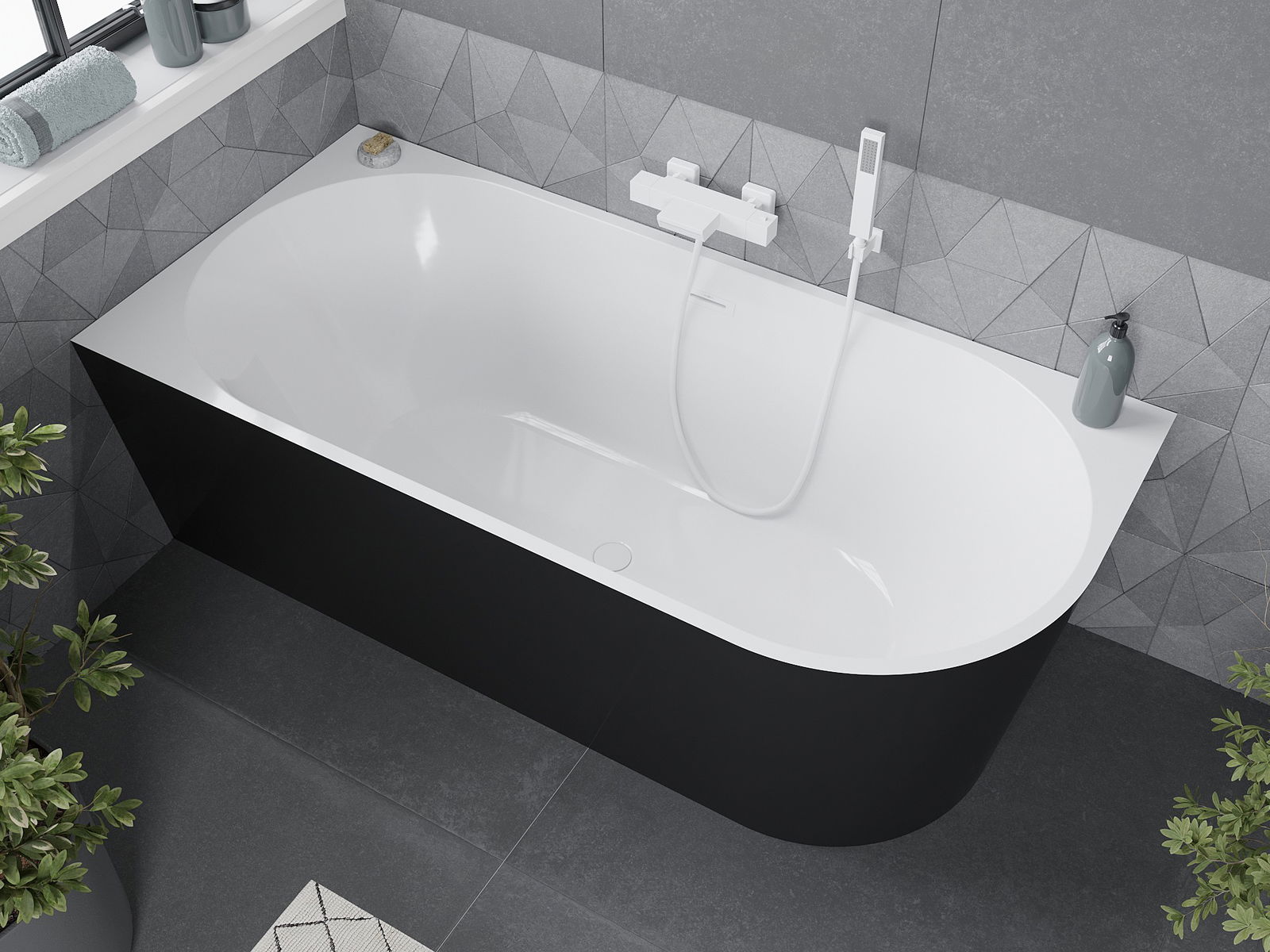 Mexen Mia laisvai pastatoma vonia, kampinė kairė 150 x 75 cm, balta/juoda, baltas perėjimas - 52691507575L-20