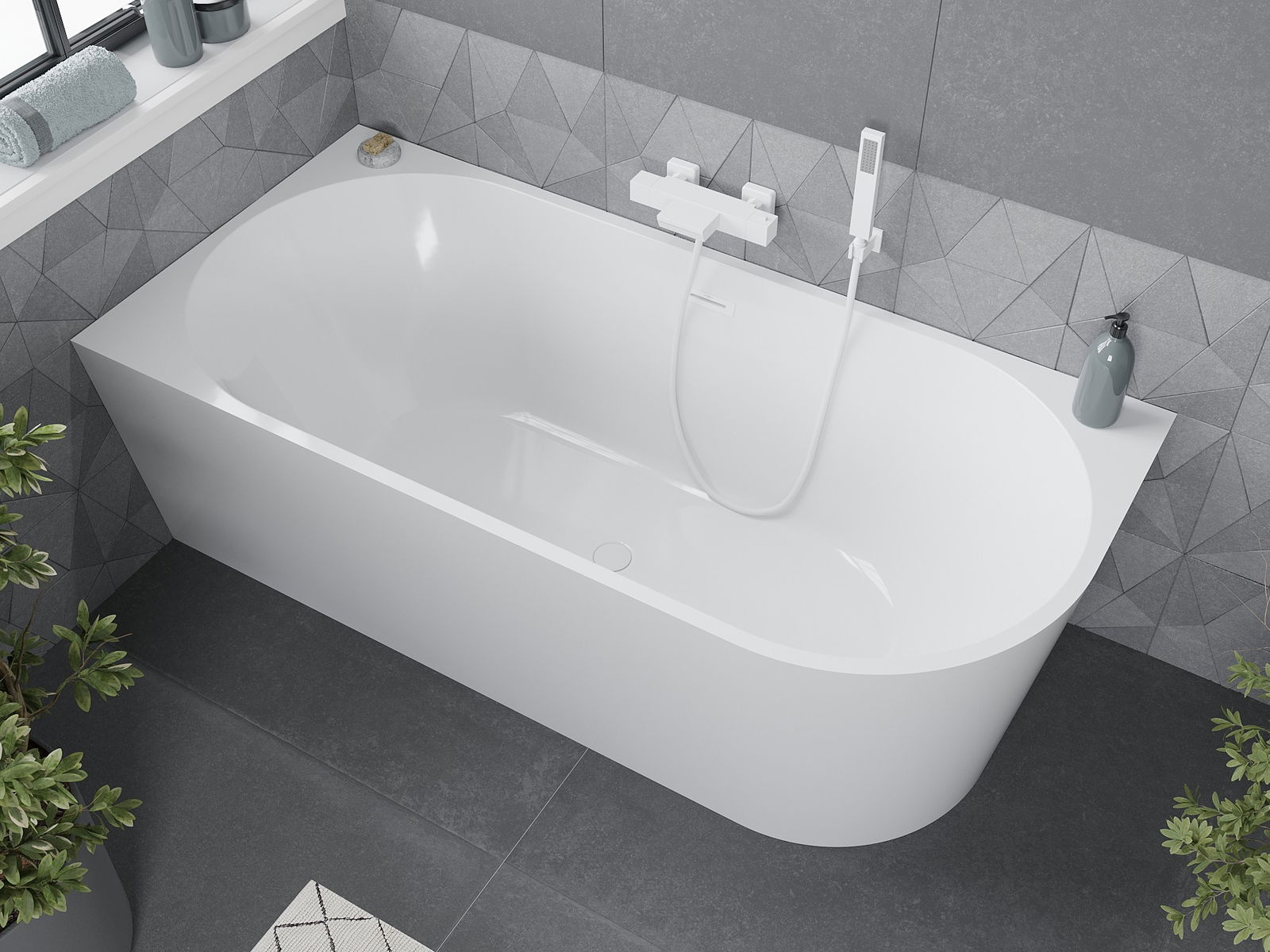 Mexen Mia atskirai stovinti kampinė vonia kairioji 160 x 75 cm, balta, baltas perpilimas - 52691607500L-20