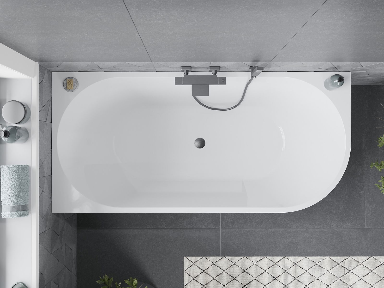 Mexen Mia laisvai pastatoma vonia, kairinis kampas, 160 x 75 cm, balta, perbraukimas šepečiu pilka spalva - 52691607500L-66