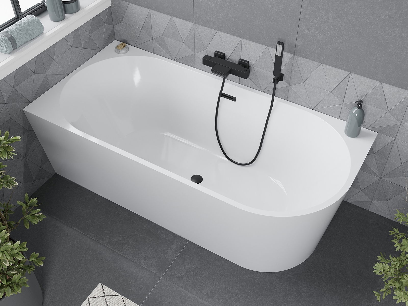 Mexen Mia laisvai pastatoma vonia su kairiniu kampu 160 x 75 cm, balta, juodas persipylimas - 52691607500L-70