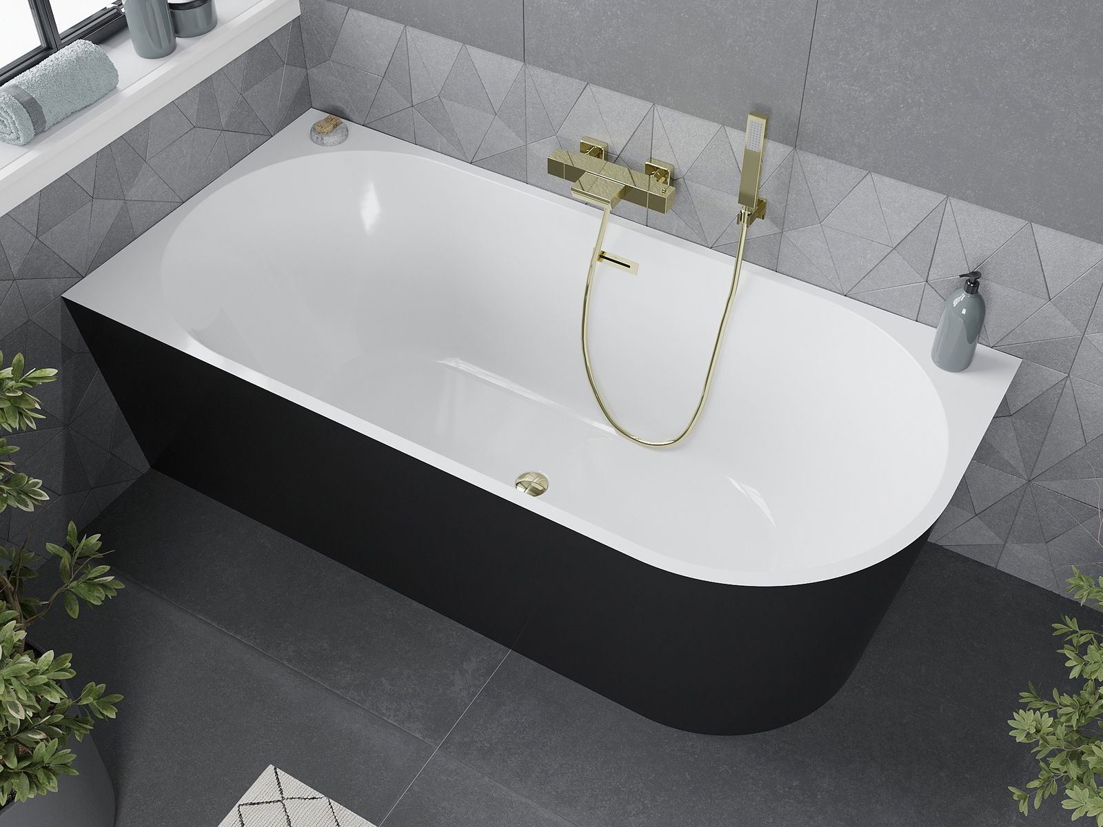 Mexen Mia laisvai pastatoma kampinė vonia, kairinė 160 x 75 cm, balta/juoda, auksinis perliukas - 52691607575L-50