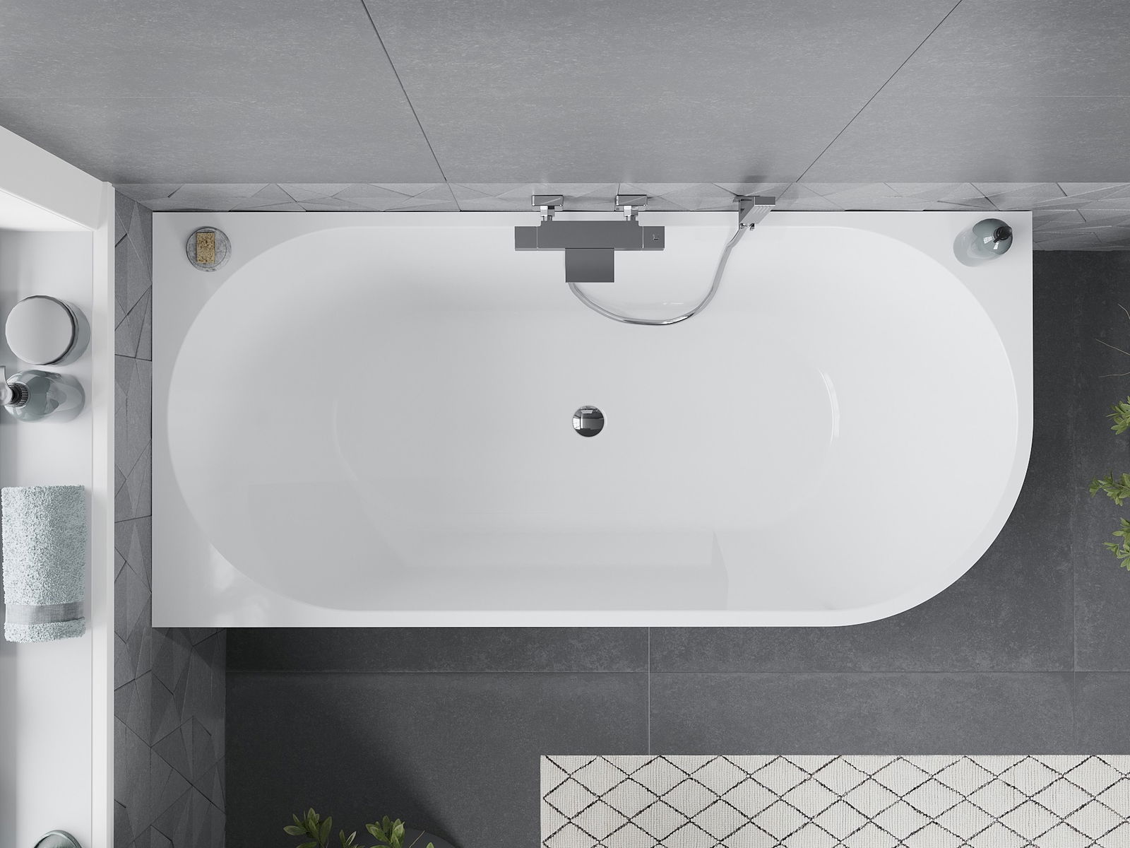 Mexen Mia laisvai pastatoma kampinė vonia kairėje 170 x 80 cm, balta/juoda, chromuotas perteklius - 52691708075L-01