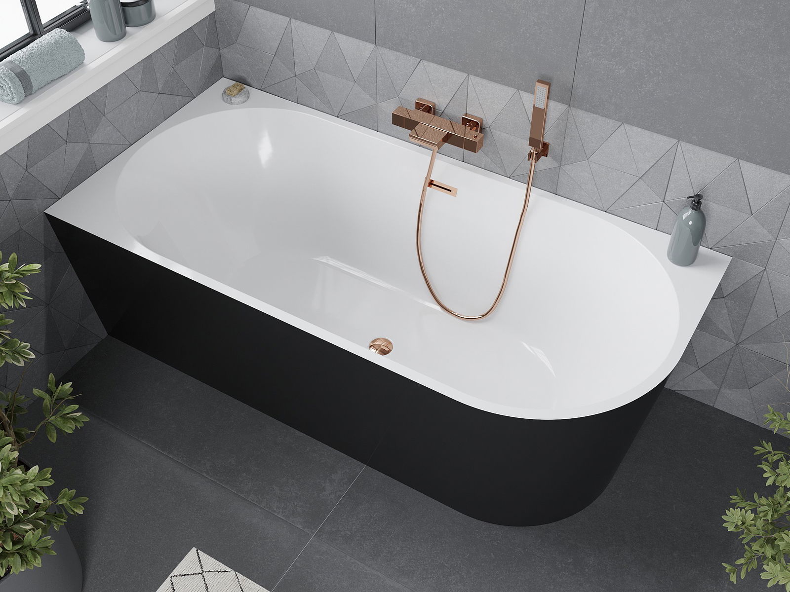 Mexen Mia laisvai pastatoma kampinė vonia kairinė 170 x 80 cm, balta/juoda, perpildymo anga rožinis auksas - 52691708075L-60