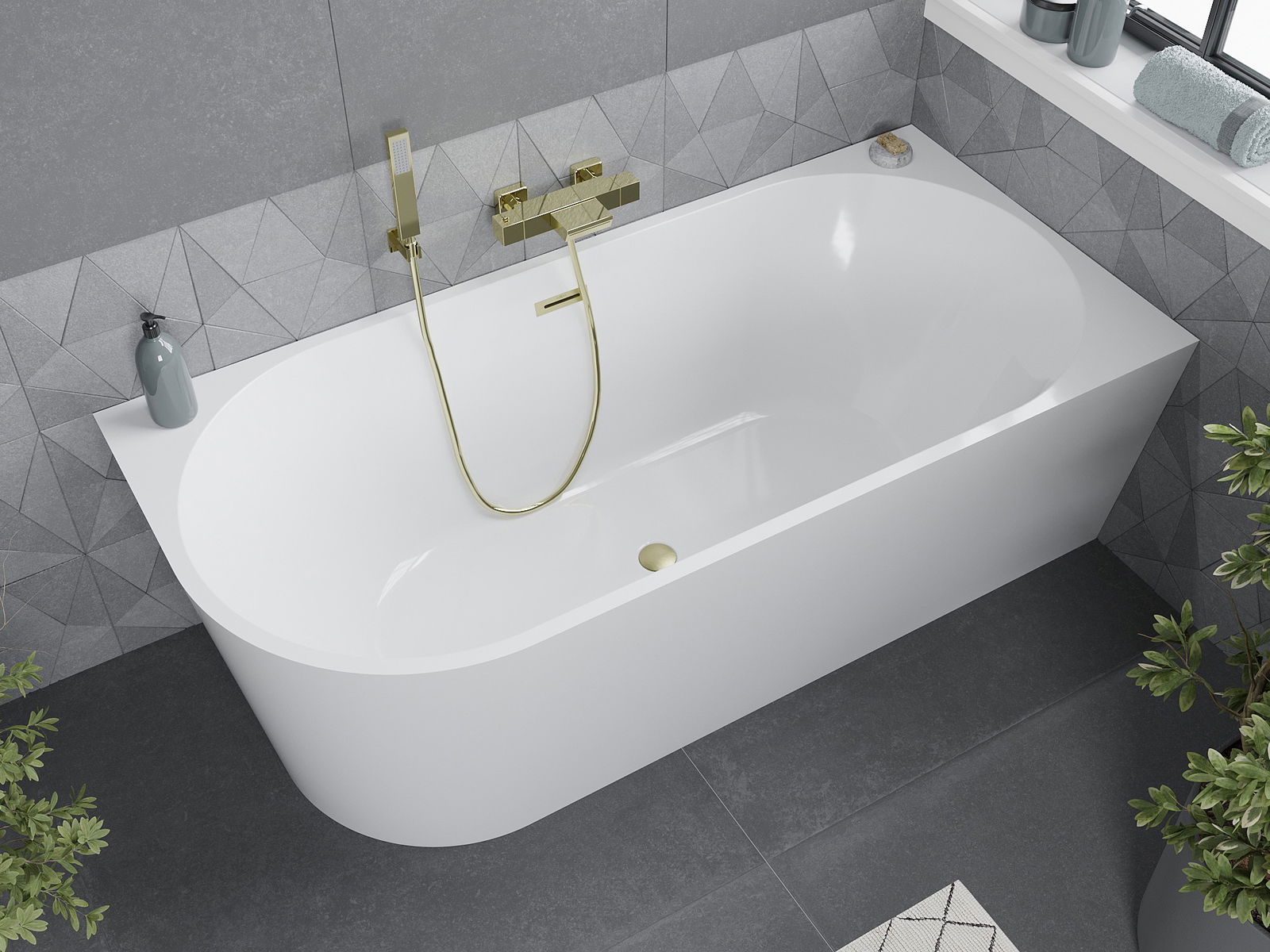 Mexen Mia laisvai stovinti kampinė vonia dešinė 170 x 80 cm, balta, auksinis šlifuotas persipylimas - 52691708000P-55