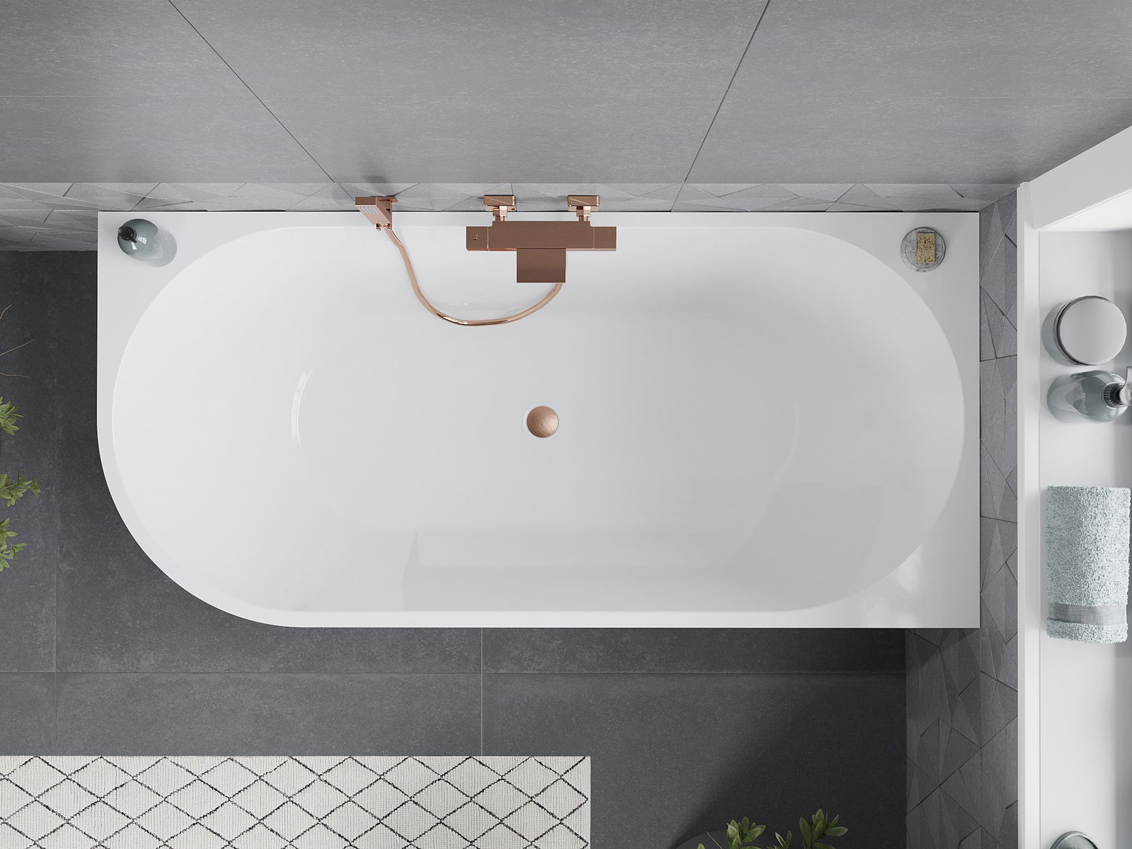 Mexen Mia stačiakampė laisvai stovinti vonia, dešinys kampas, 170 x 80 cm, balta, šlifuoto vario nutekamasis ilgis