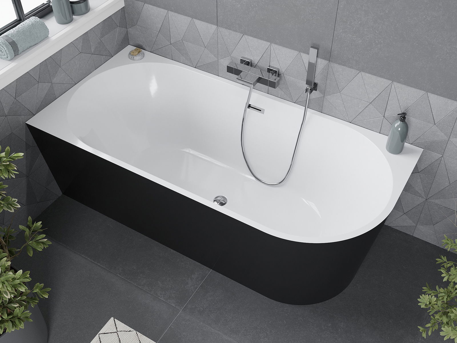 Mexen Mia laisvai stovinti kampinė vonia, kairė 180 x 80 cm, balta/juoda, chromuotas perpylimas - 52691808075L-01