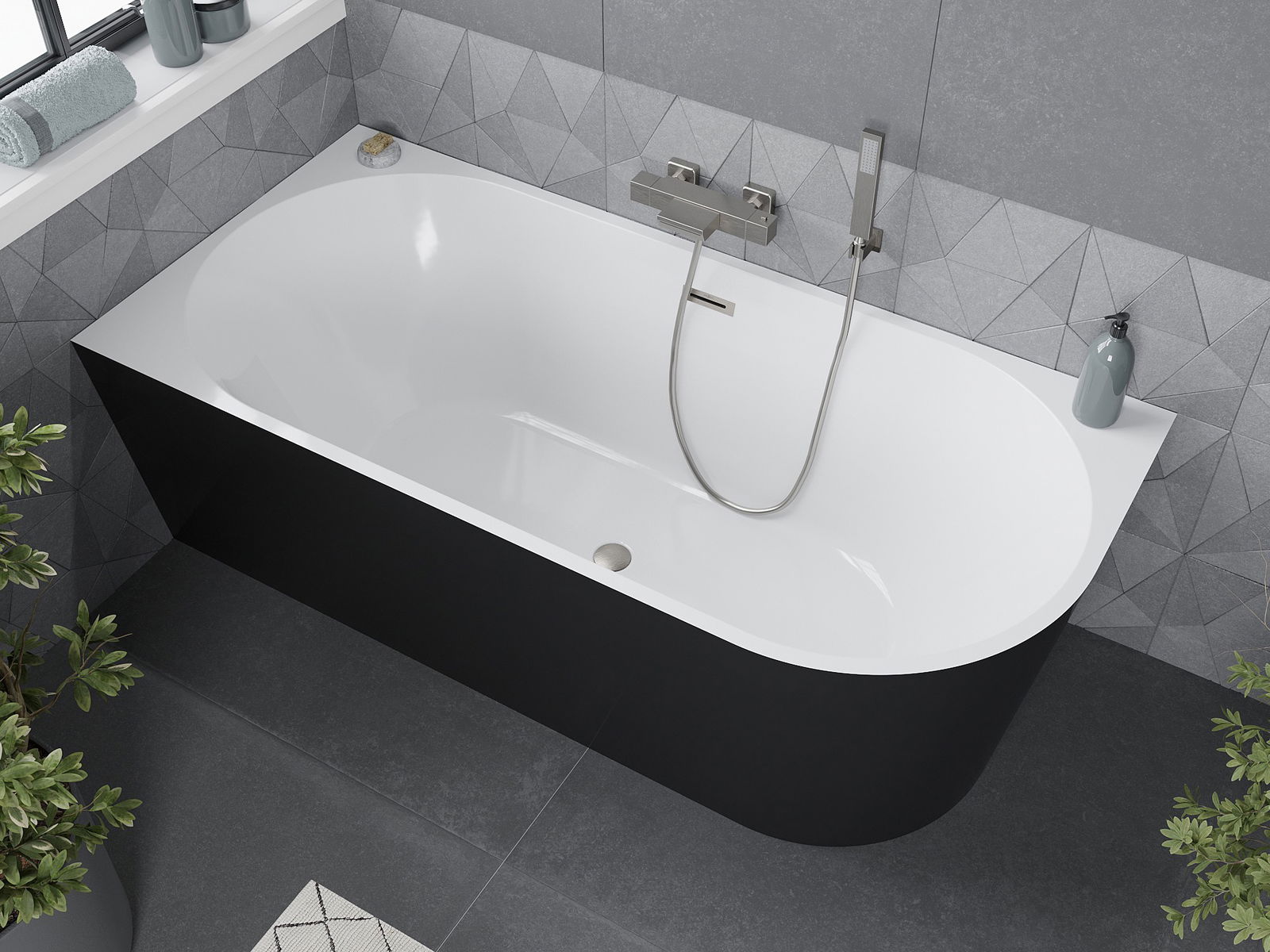 Mexen Mia laisvai stovinti kampinė vonia, kairė 180 x 80 cm, balta/juoda, nikeliuotas perlietimas - 52691808075L-97