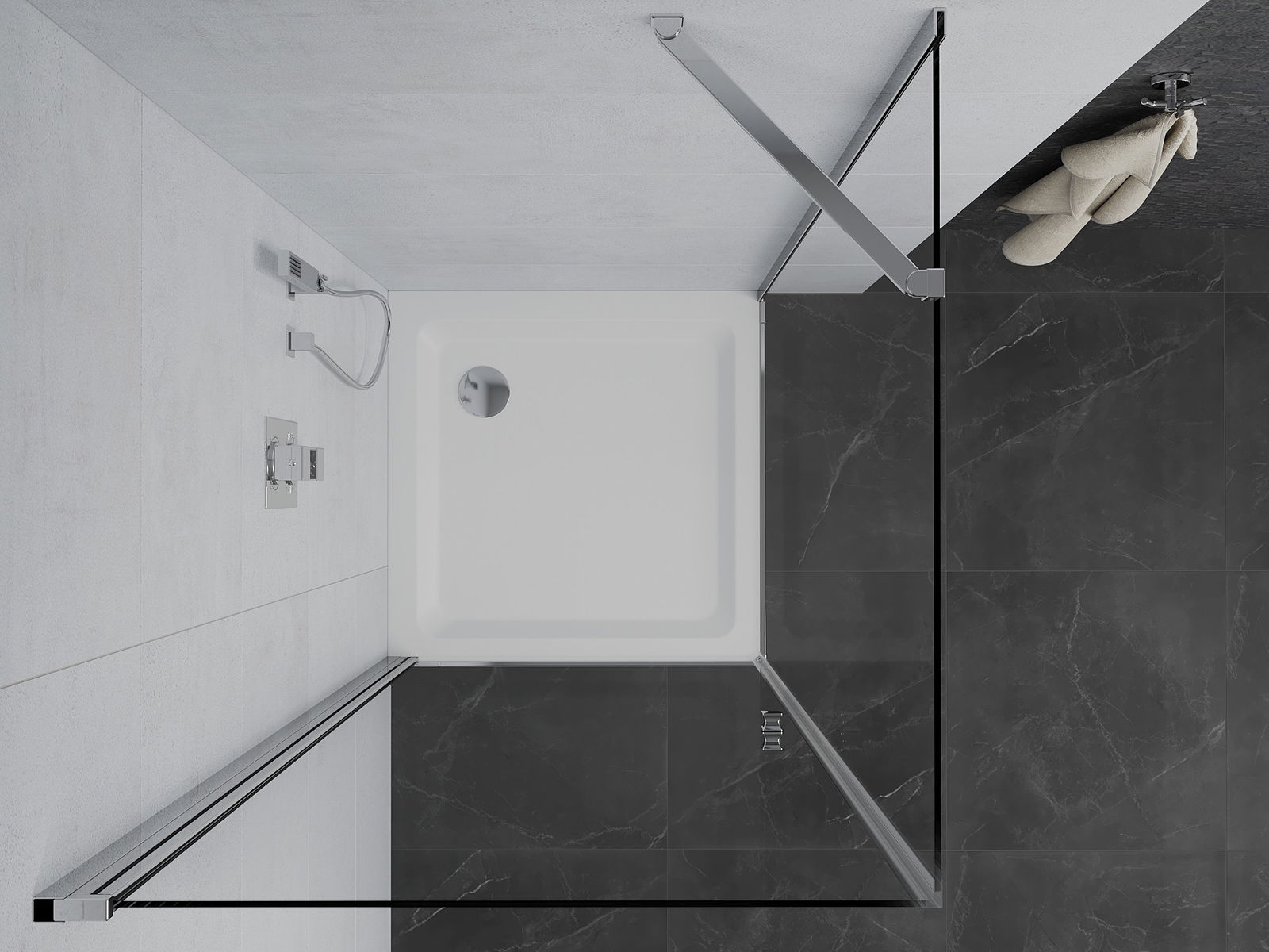Dėl universalaus tvirtinimo sistemos, dušo durys gali būti sumontuotos dešinėje arba kairėje pusėje, atsižvelgiant į poreikius. Tai leidžia lengvai suprojektuoti dušą, pritaikytą vonios kambario erdvei.