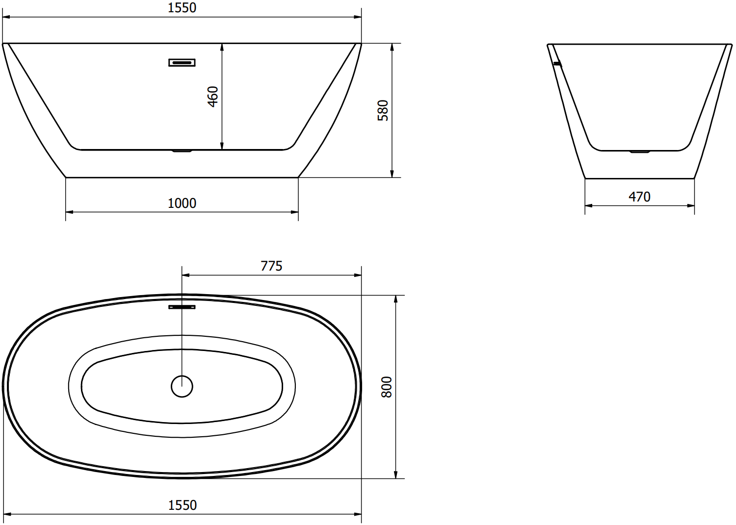 Mexen Eris laisvai pastatoma vonia 155 x 80 cm, balta, perpylė gun gray šlifuota - 53441558000-66