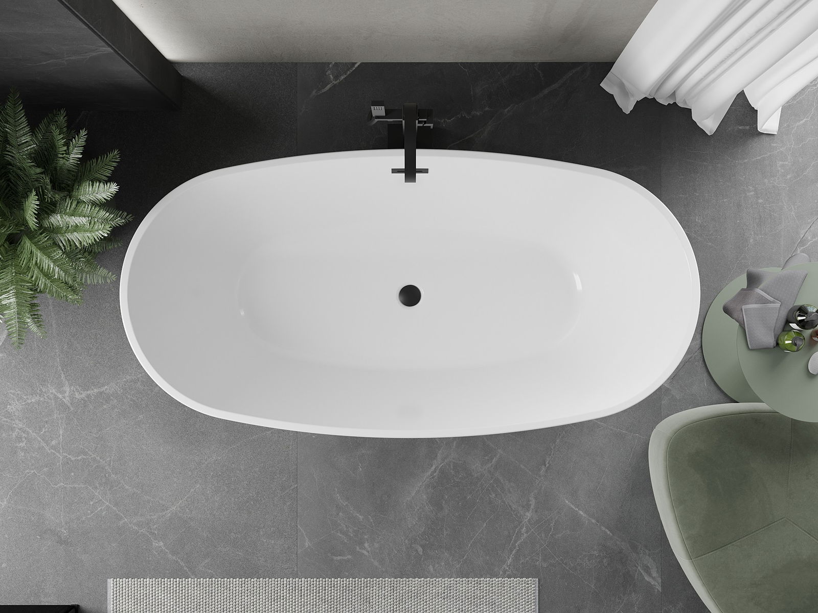 Mexen Eris laisvai stovinti vonia 170 x 80 cm, balta, juodas perpylimas - 53441708000-70