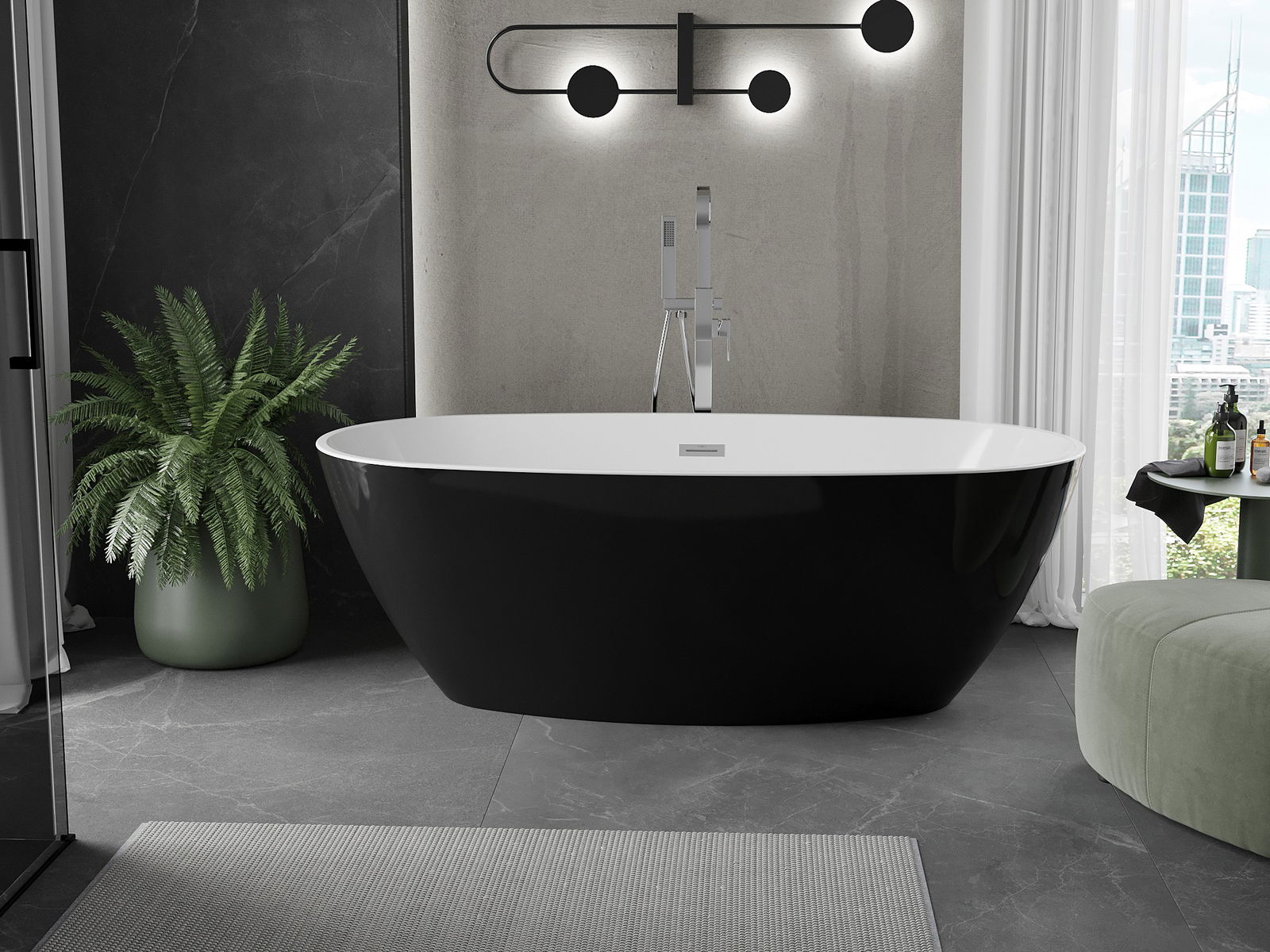 Mexen Eris laisvai pastatoma vonia 170 x 80 cm, balta/juoda, chromuota - 53441708075-01
