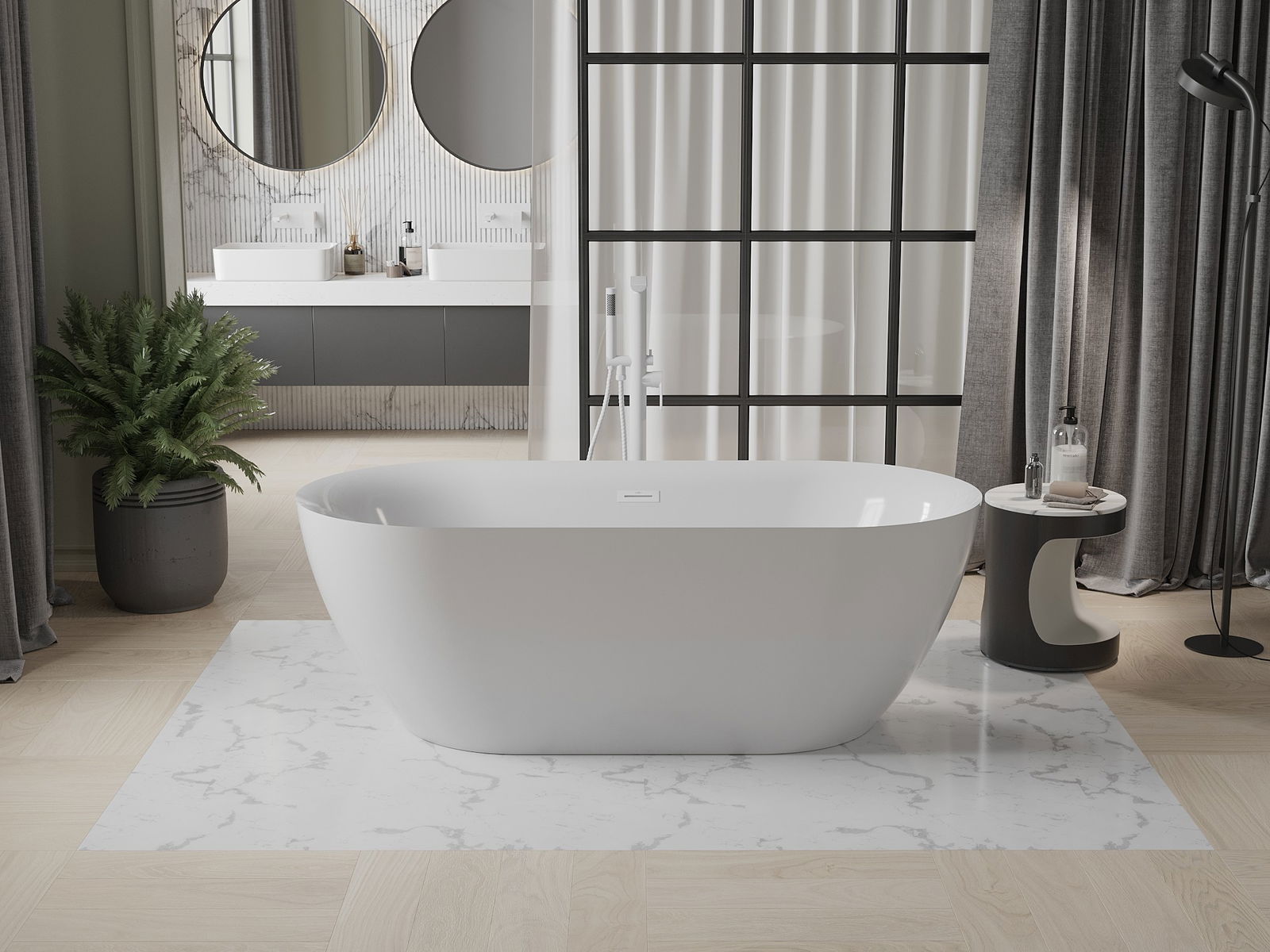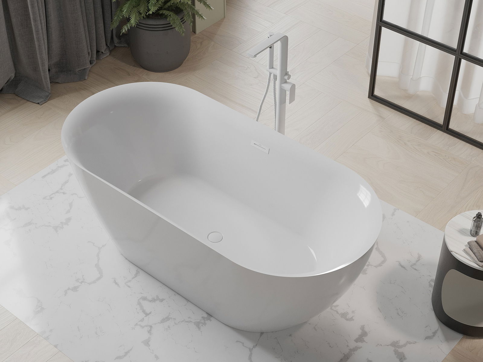 Mexen Roxy laisvai stovinti vonia 170 x 80 cm, balta, baltas perpylimas - 51201708000-20