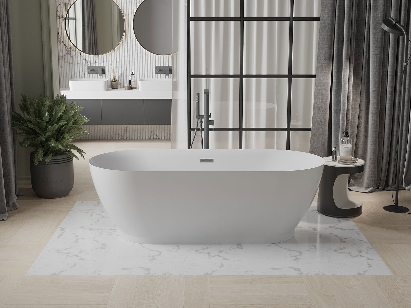Mexen Roxy laisvai pastatoma vonia 180 x 85 cm, balta, perpildymo anga gun gray šlifuota - 51201808500-66