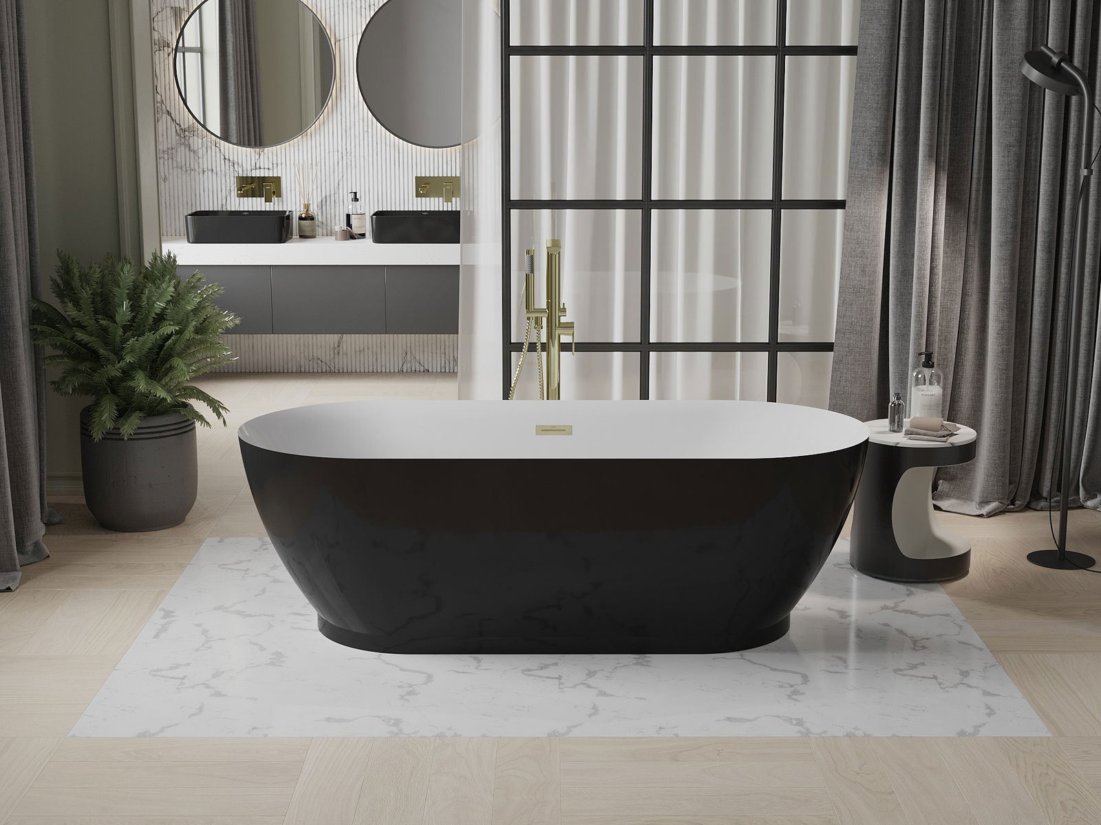 Mexen Roxy laisvai pastatoma vonia 180 x 85 cm, balta/juoda, auksinis perteklius - 51201808575-50