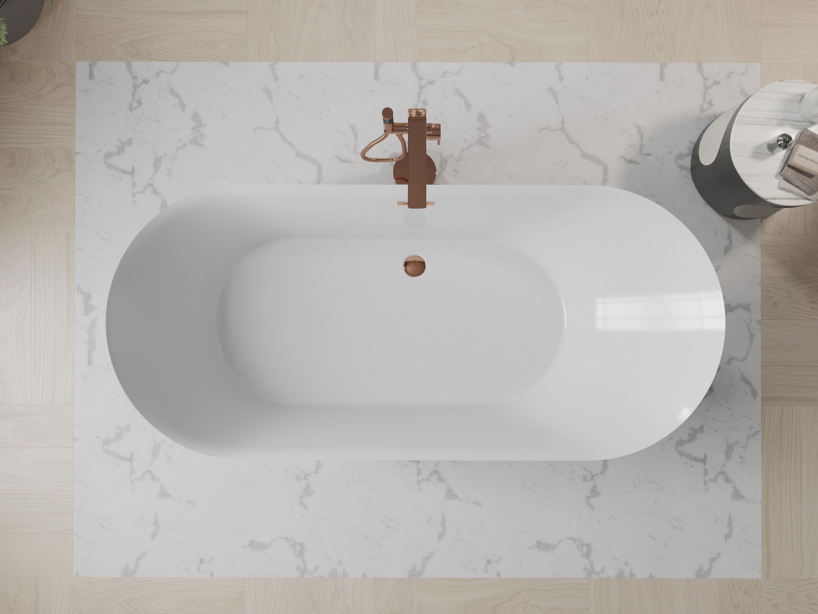 Mexen Roxy laisvai stovinti vonia 180 x 85 cm, balta/juoda, perpildymo anga rožinė aukso spalva - 51201808575-60