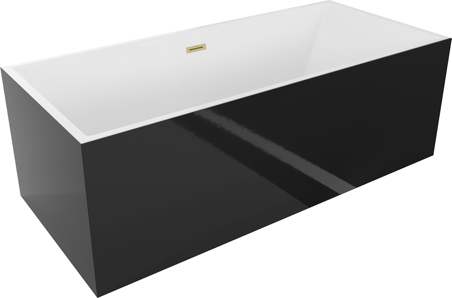 Mexen Vigo laisvai pastatoma vonia 178,5 x 80 cm, balta/juoda, auksinis šlifuotas perpylimas - 51251788075-55