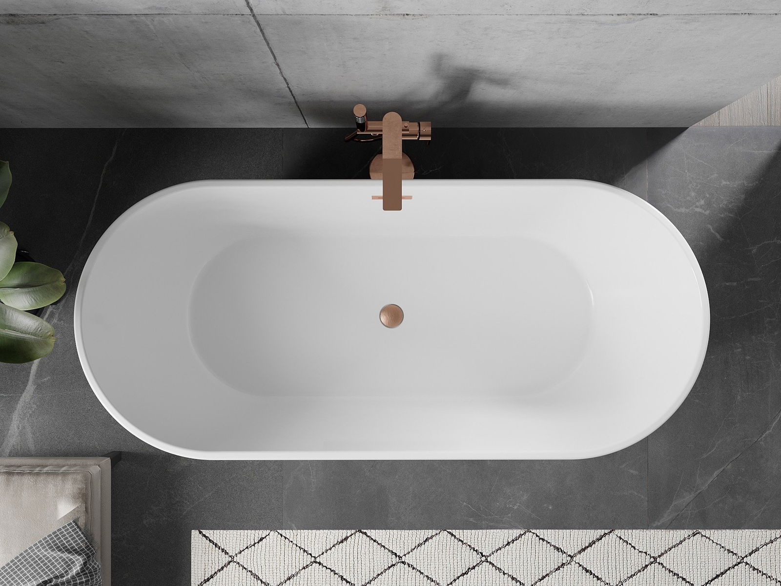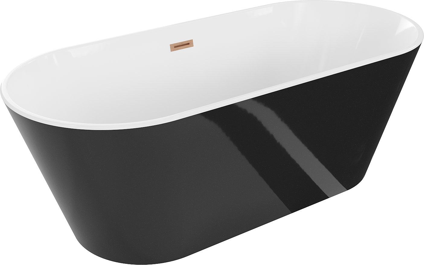 Mexen Flavia laisvai pastatoma vonia 150 x 75 cm, balta/juoda, šepečiu valyta vario perpylimo anga - 54031507575-65