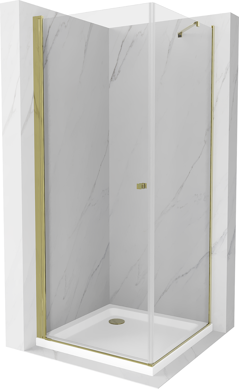 Mexen Pretoria atveriama dušo kabina 80 x 80 cm, skaidri, auksinė + šlaitinis dušo padėklas Flat - 852-080-080-50-00-4010