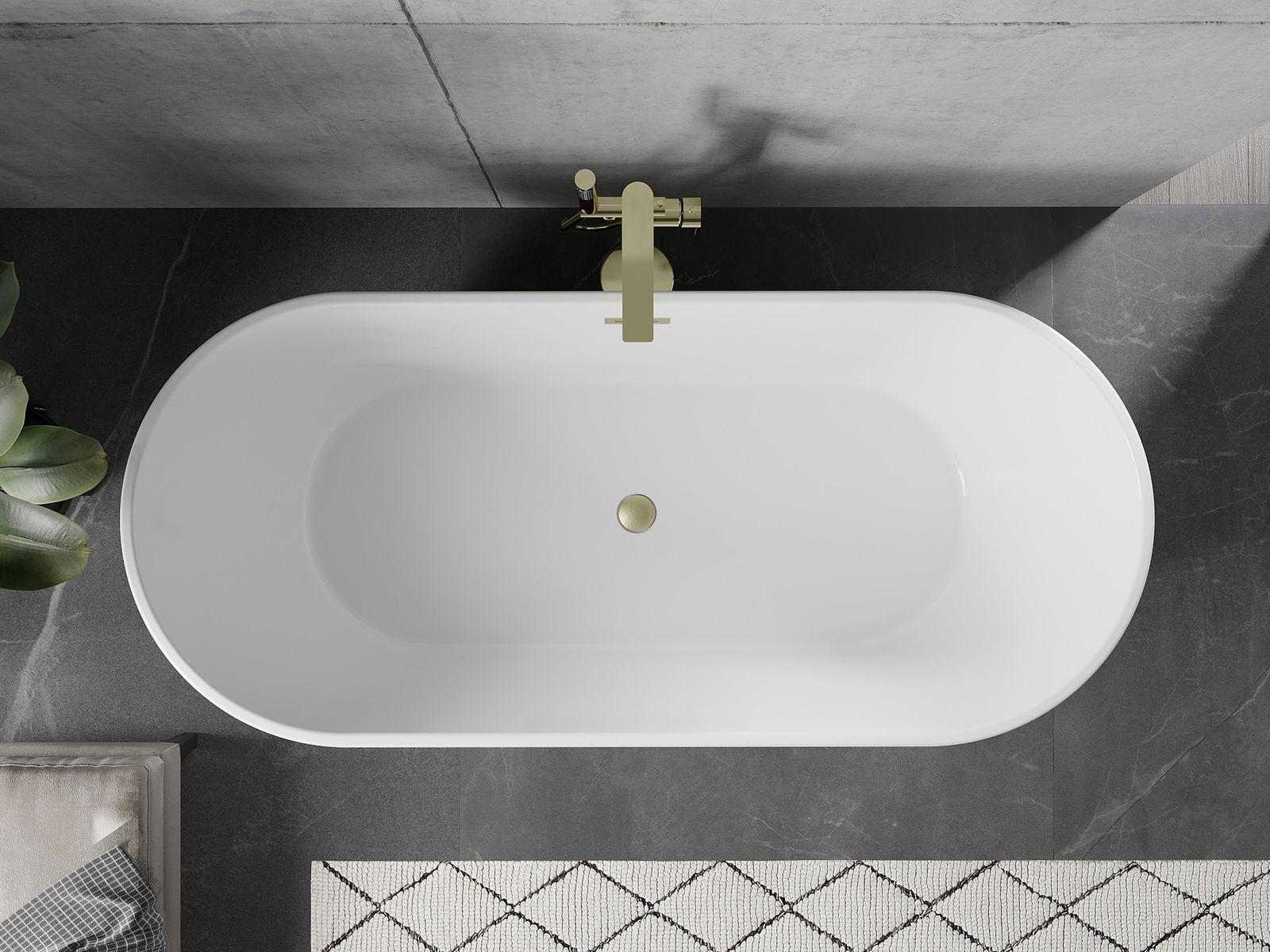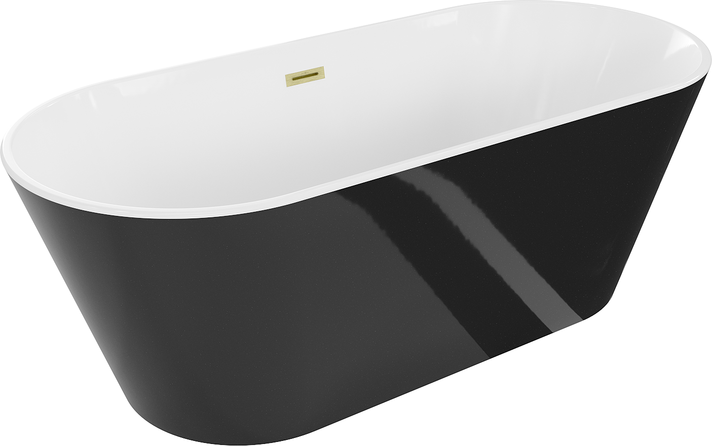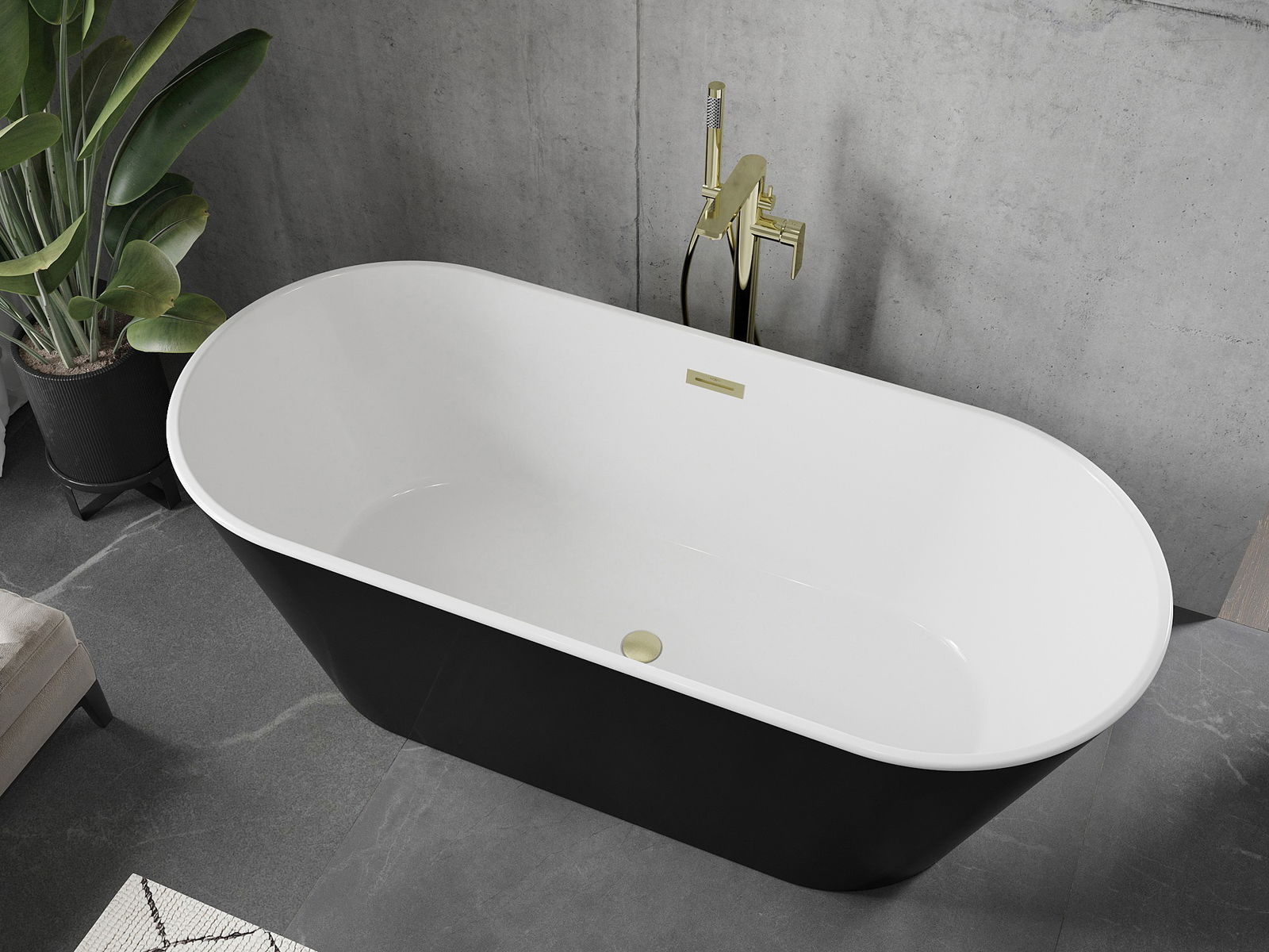 Mexen Flavia laisvai stovinti vonia 170 x 75 cm, balta/juoda, auksinė matinė perpylimo anga - 54031708075-55