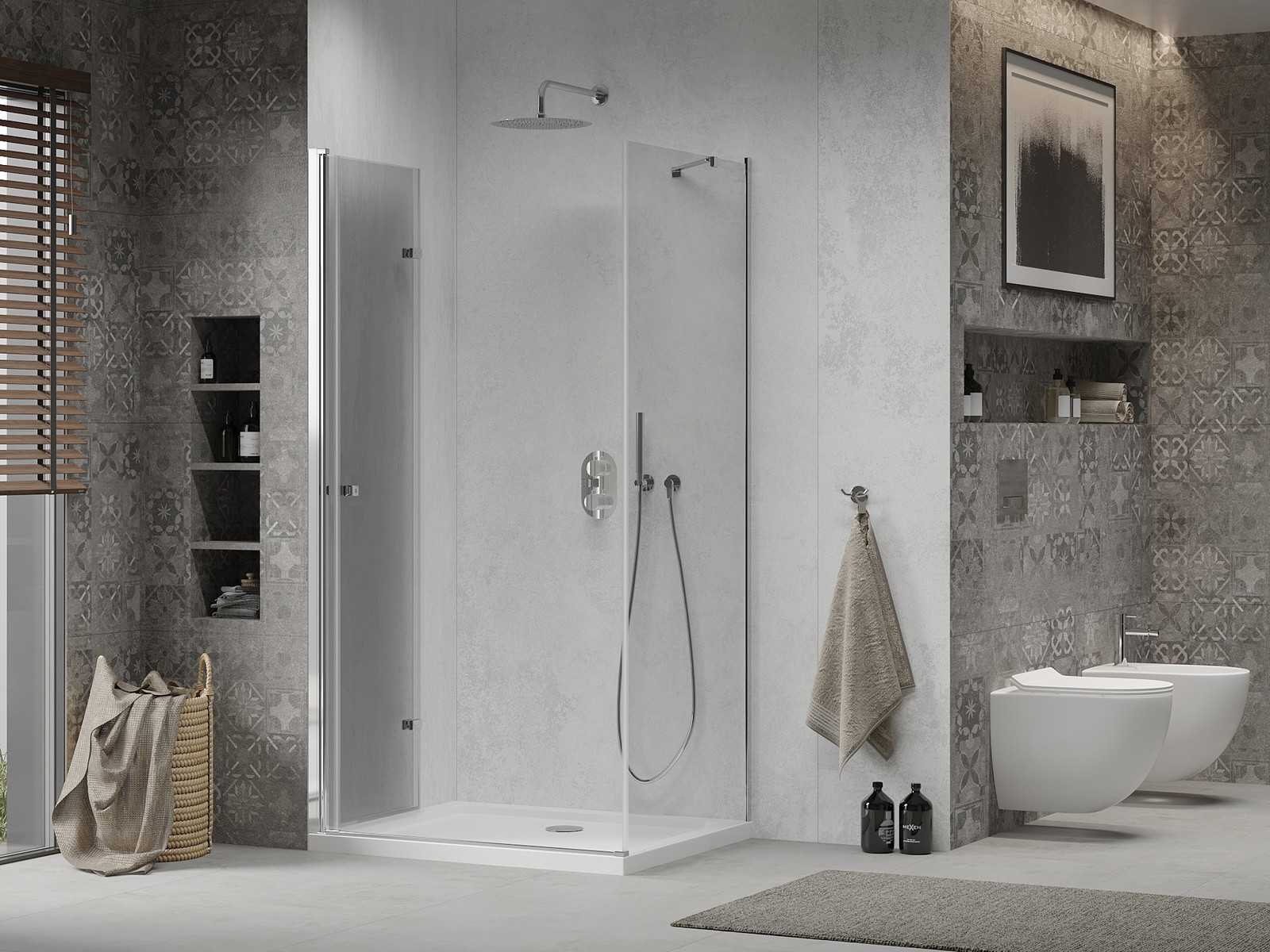 Galimybė sulenkti duris, tiek į išorę, tiek į vidų, leidžia gauti daugiau erdvės nenaudojant dušo. Tai yra idealus sprendimas mažesnėms vonios kambariams, maksimaliai išnaudojantis turimą plotą.