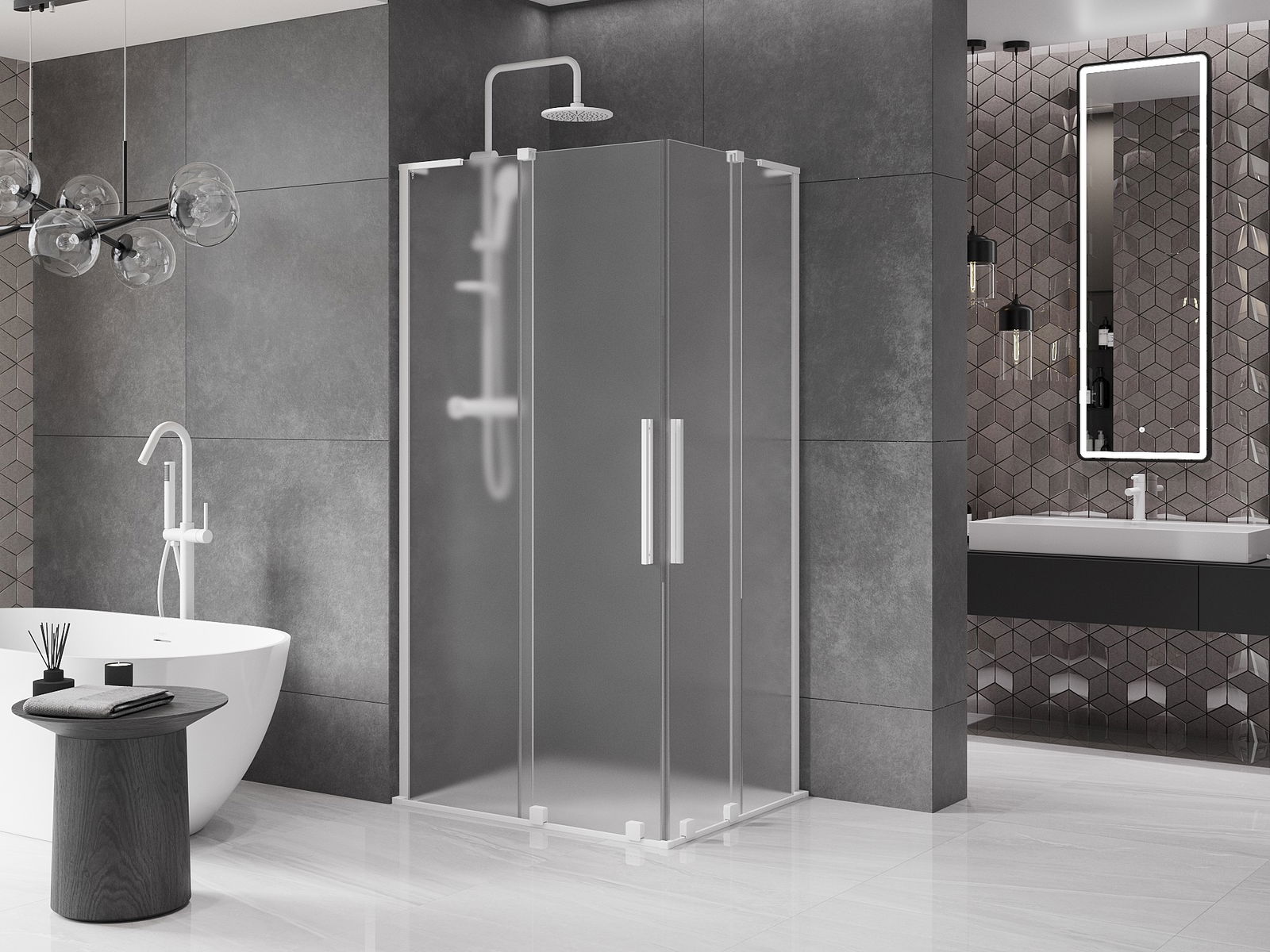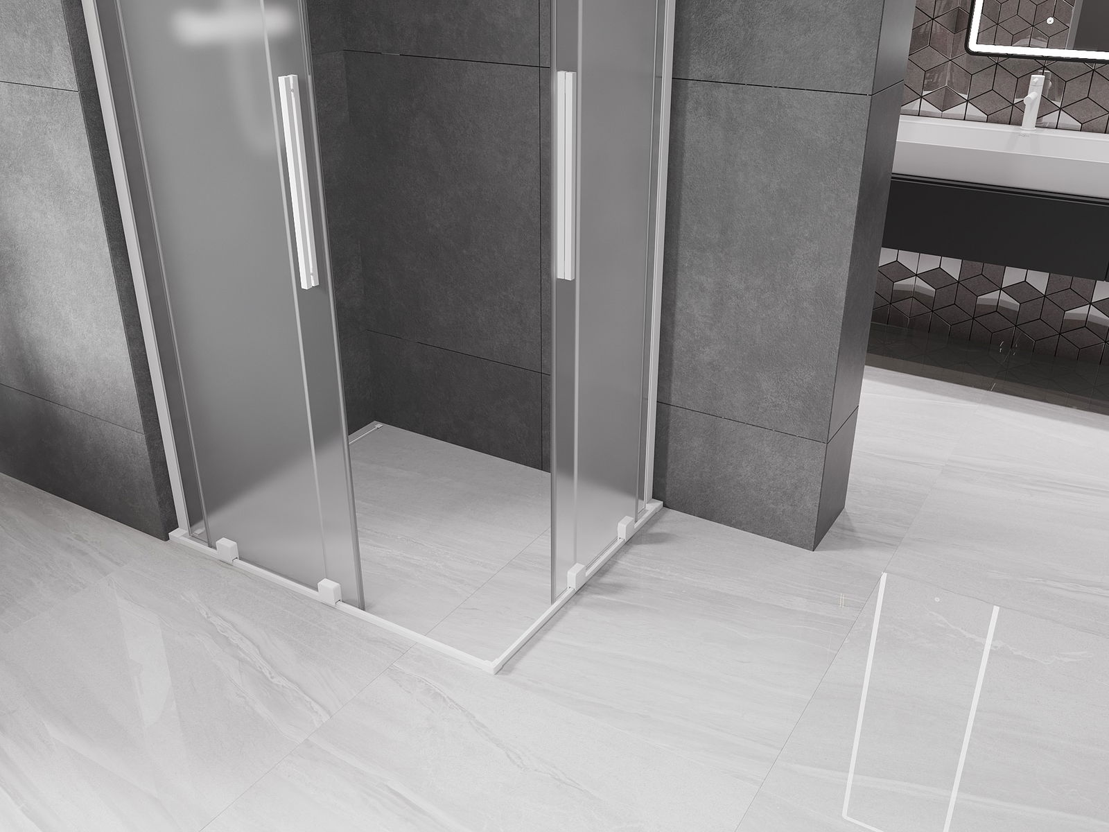 Mexen Velar L Duo stumdomas dušo kabina 90 x 80 cm, matinė, balta - 871-090-080-02-33-20