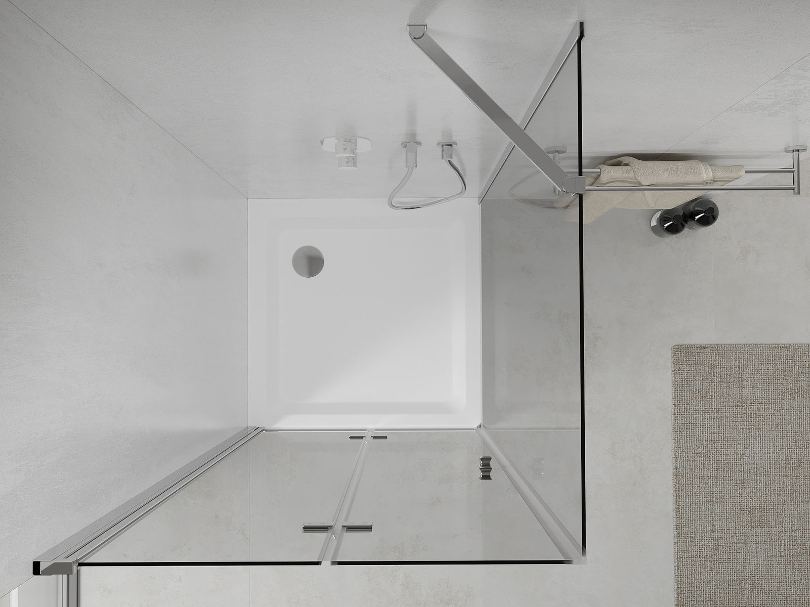 Mexen Lima sulankstoma dušo kabina 100 x 100 cm, skaidri, chromas + plokščias dušo padėklas - 856-100-100-01-00-4010