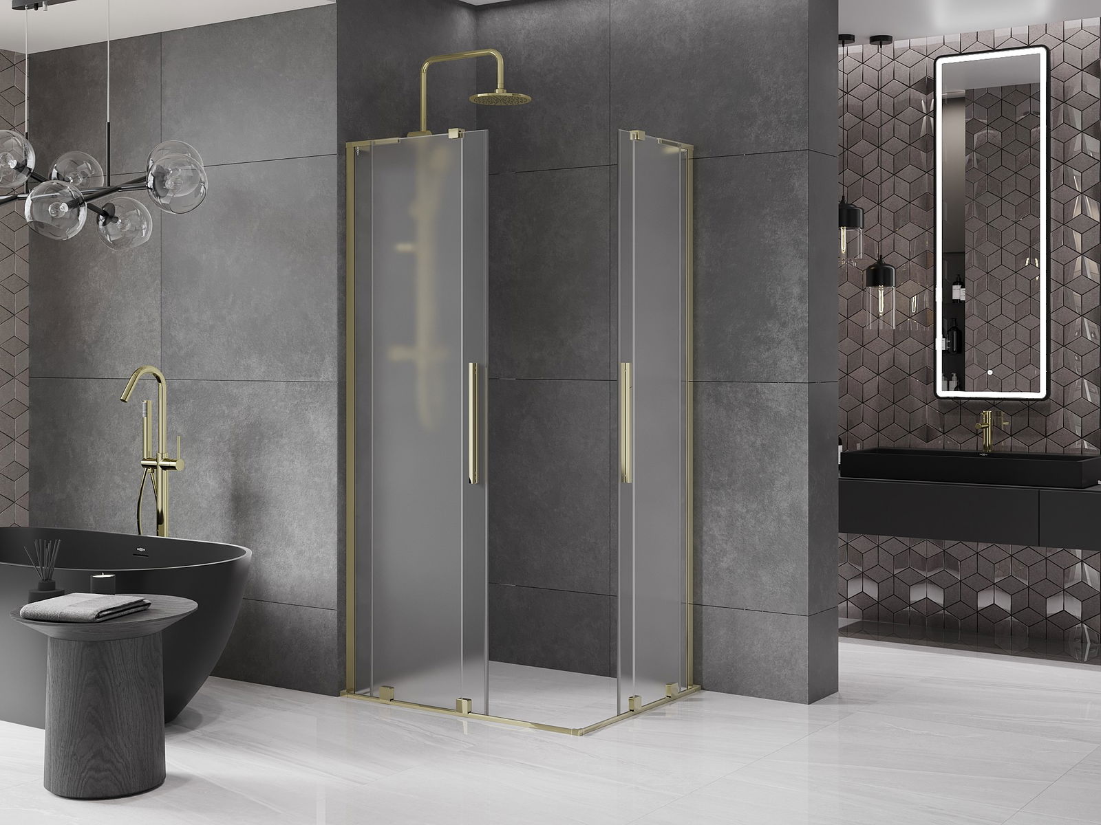 Mexen Velar L Duo slydimo dušo kabina 100 x 90 cm, matinė, auksinė - 871-100-090-02-33-50