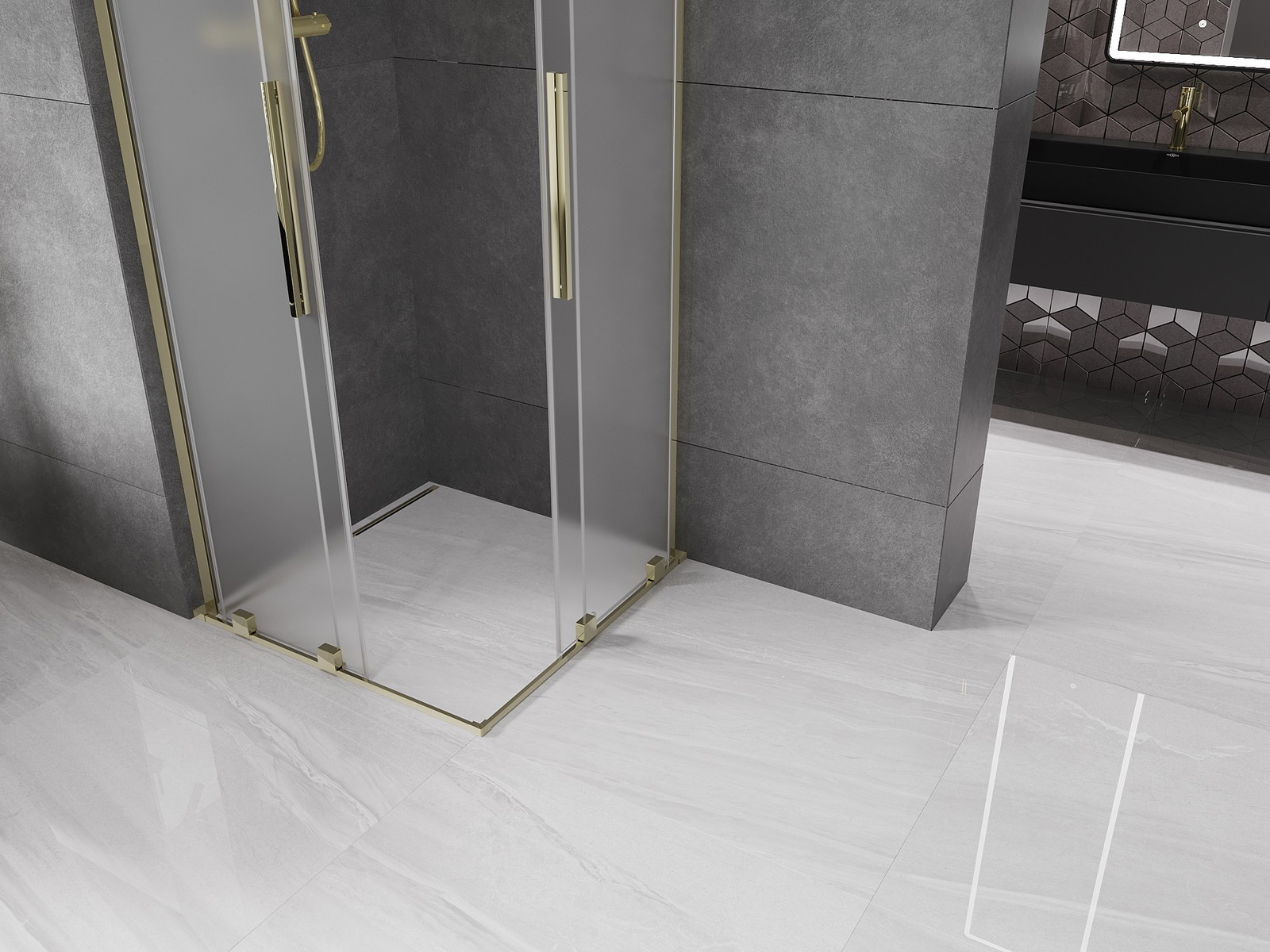 Mexen Velar L Dviguba stumdoma dušo kabina 100 x 100 cm, matinė, auksinė - 871-100-100-02-33-50