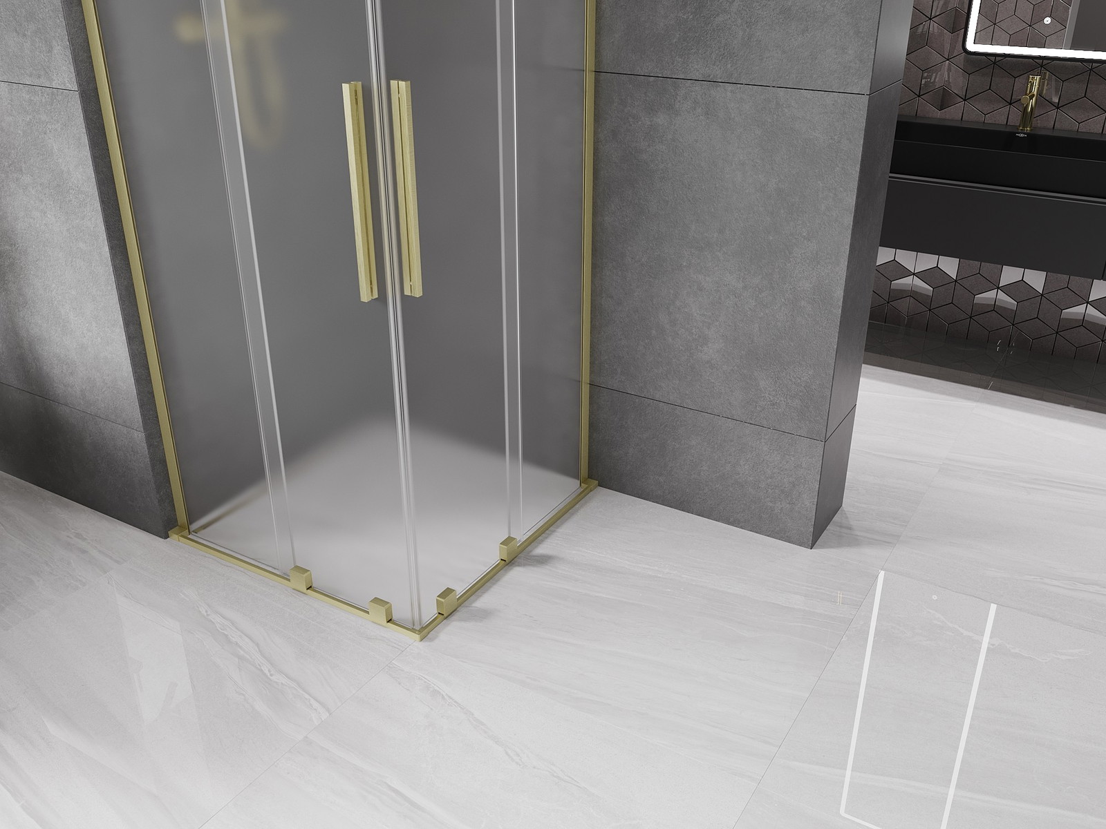 Mexen Velar L Dviguba stumdoma dušo kabina 80 x 80 cm, matinė, auksu šlifuota - 871-080-080-02-33-55