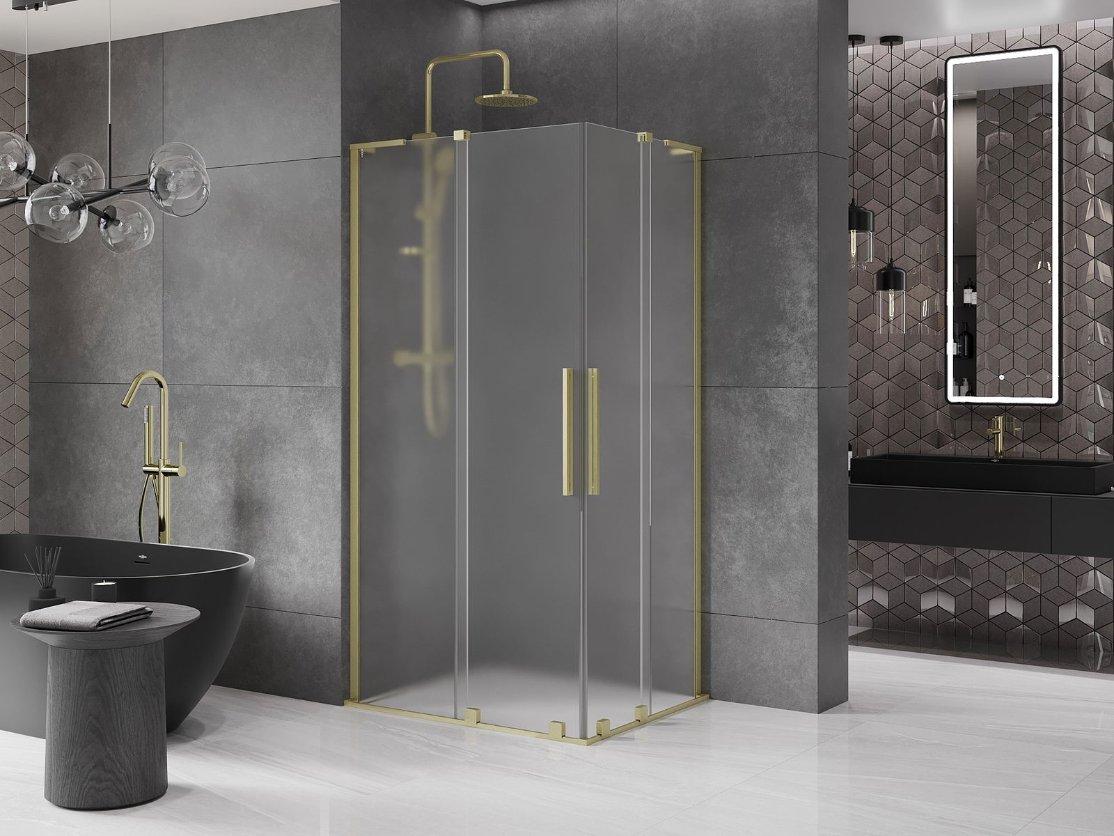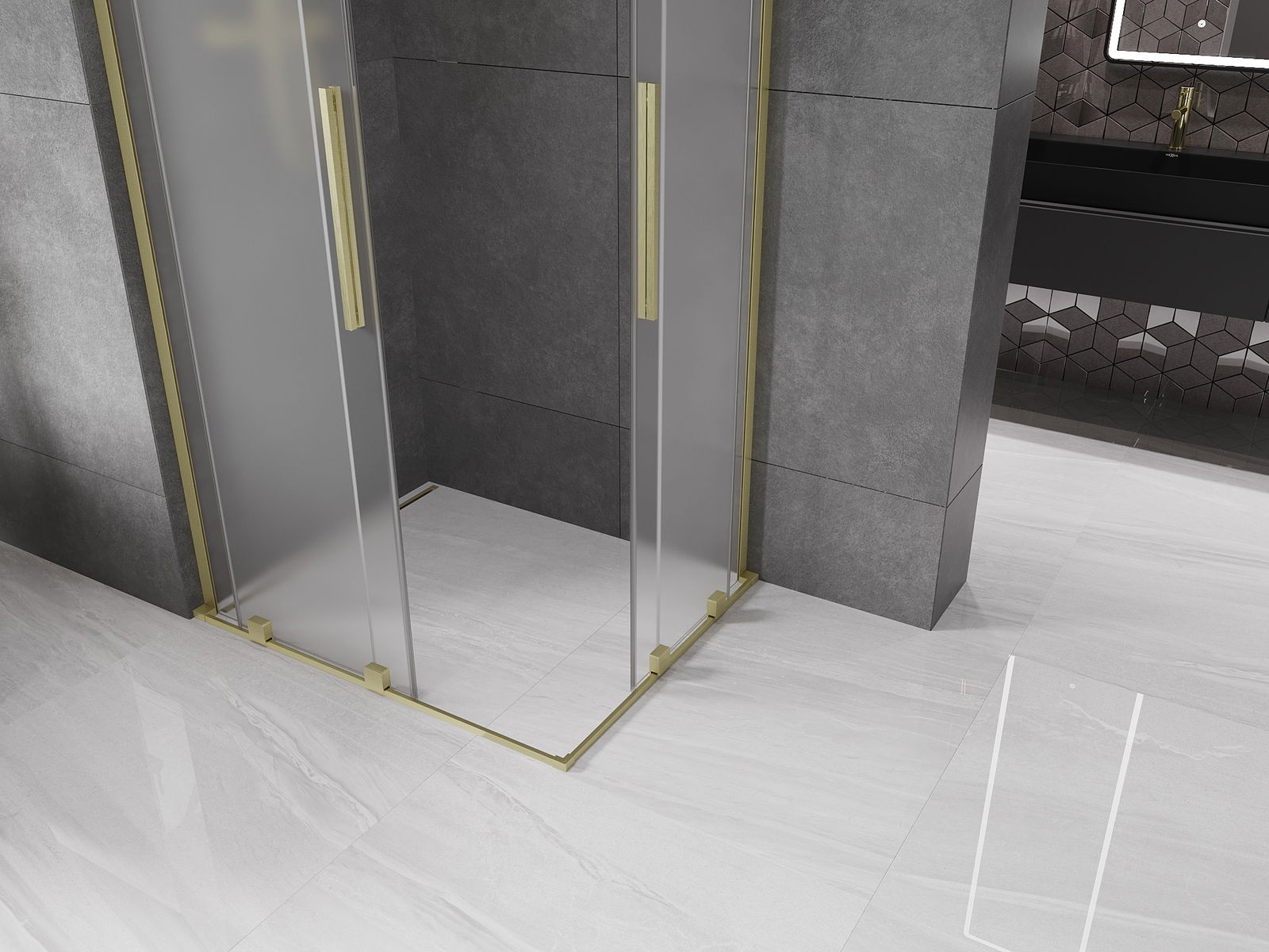 Mexen Velar L Duo stumdomas dušo kabina 100 x 90 cm, matinė, šlifuota auksinė - 871-100-090-02-33-55