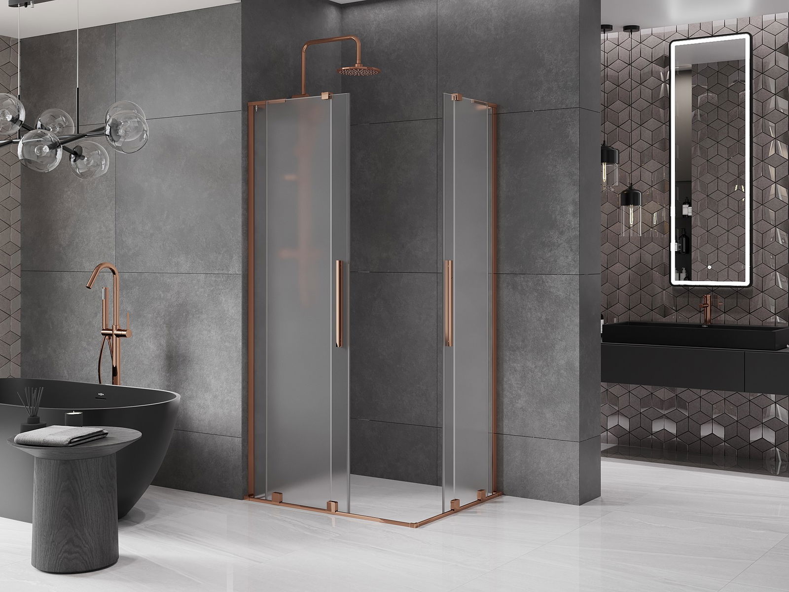 Mexen Velar L Duo stumdomoji dušo kabina 100 x 90 cm, matinė, rožinis auksas - 871-100-090-02-33-60