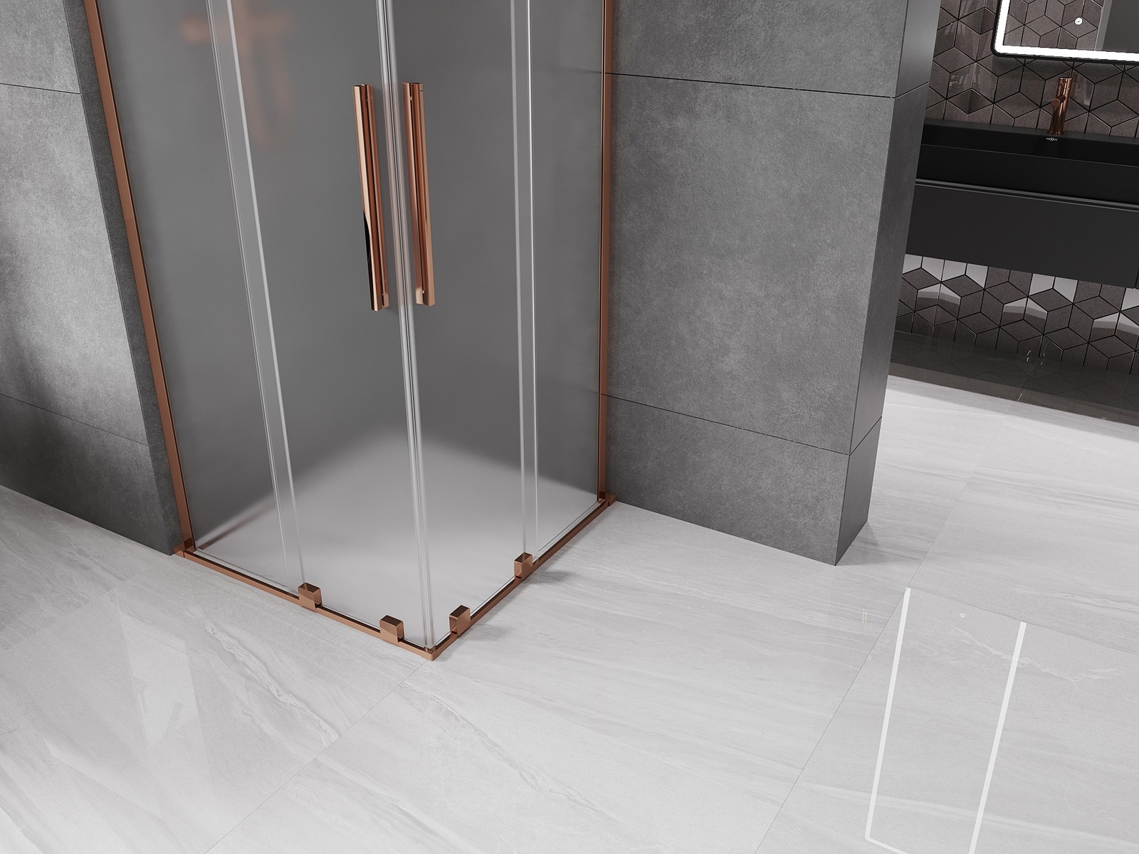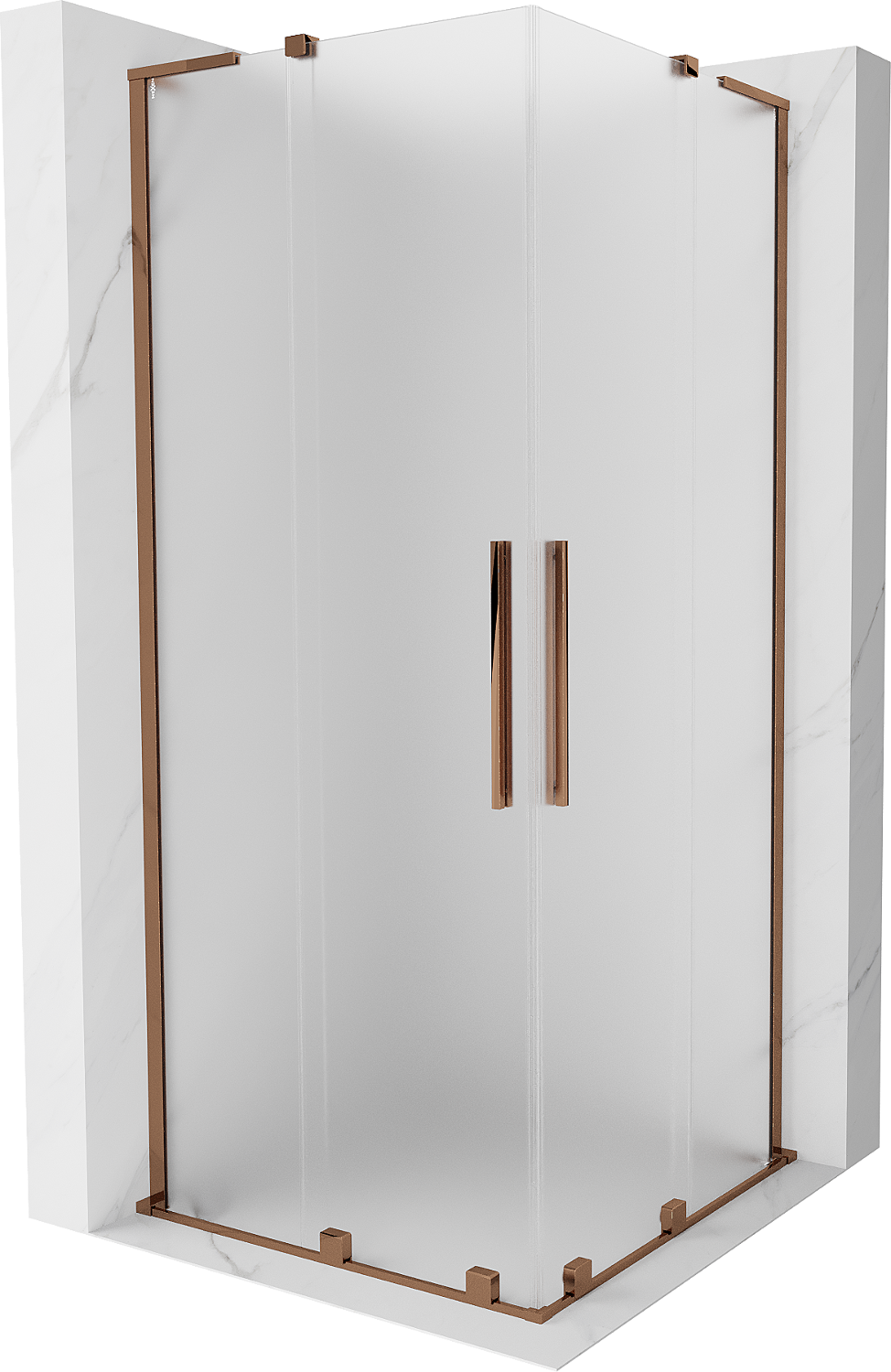 Mexen Velar L Dviguba dušo kabina su slankiosiomis durimis 100 x 100 cm, šerkšnas, rožinis auksas - 871-100-100-02-33-60