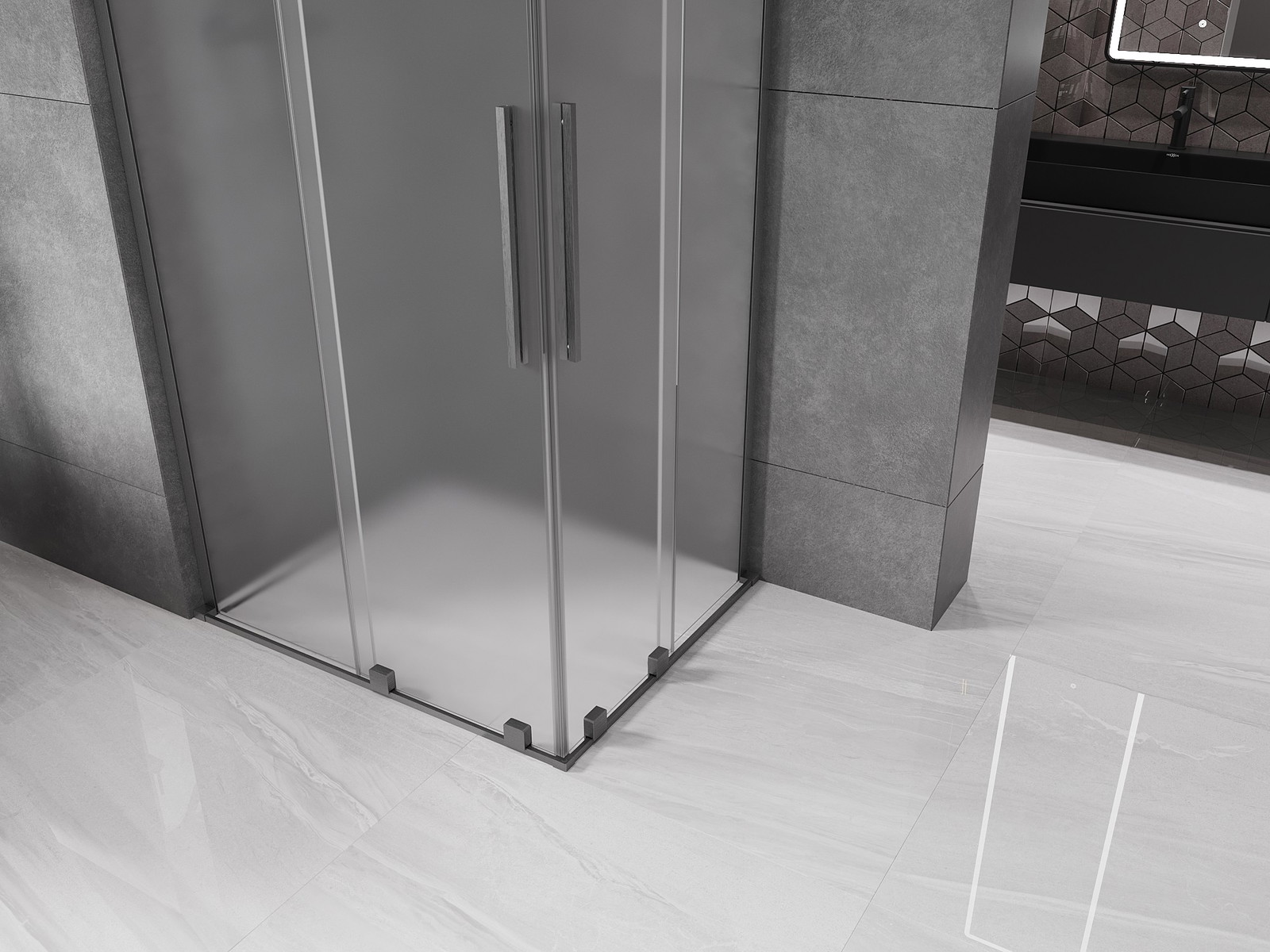 Mexen Velar L Duo dušo kabina yra idealus sprendimas šiuolaikinėms vonioms. Jos dydis 90x80 cm ir aukštis 200 cm užtikrina komfortą vartojant. Dėl universalaus montavimo ir stumdomų durų ji tinka įvairioms erdvėms. Matinė 8 mm storio stiklo apdaila, šepečiu paauksuota pilka, prideda elegancijos. Tvirta konstrukcija su aliuminio profiliais ir kampiniu stabilizatoriumi L iš nerūdijančio plieno užtikrina ilgaamžiškumą. Danga, palengvinanti valymą, reguliuojamas plotis ir sienų nelygumų kompensavimas didina funkcionalumą, o galimybė montuoti ant bako arba plytelių padidina naudojimo lankstumą.