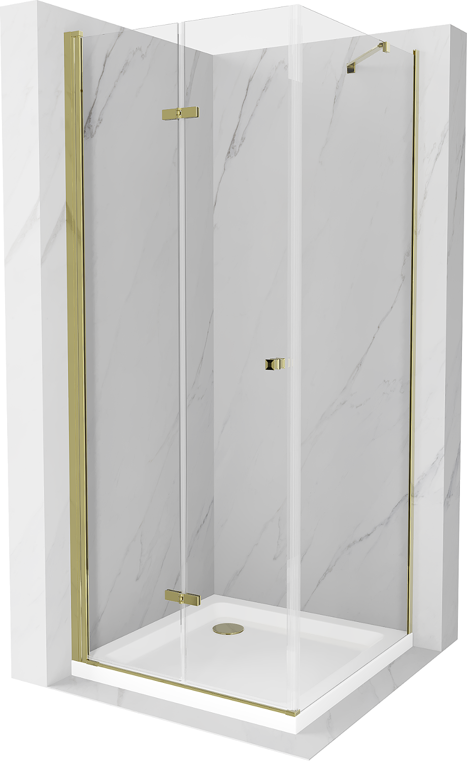 Mexen Lima Sulenama dušo kabina 80 x 80 cm, skaidri, auksinė + Flat padėklas - 856-080-080-50-00-4010