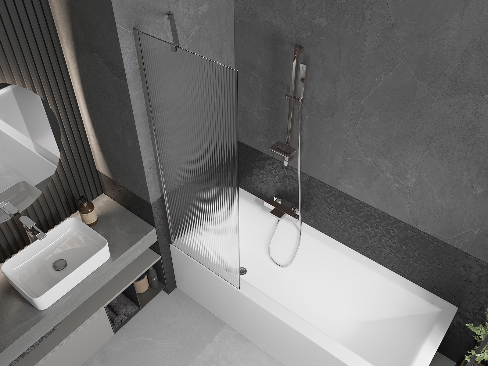 Mexen Next vonios sienelė, vienas sparnas, 60 x 150 cm, dryžiai, chromas - 895-060-000-00-09-01