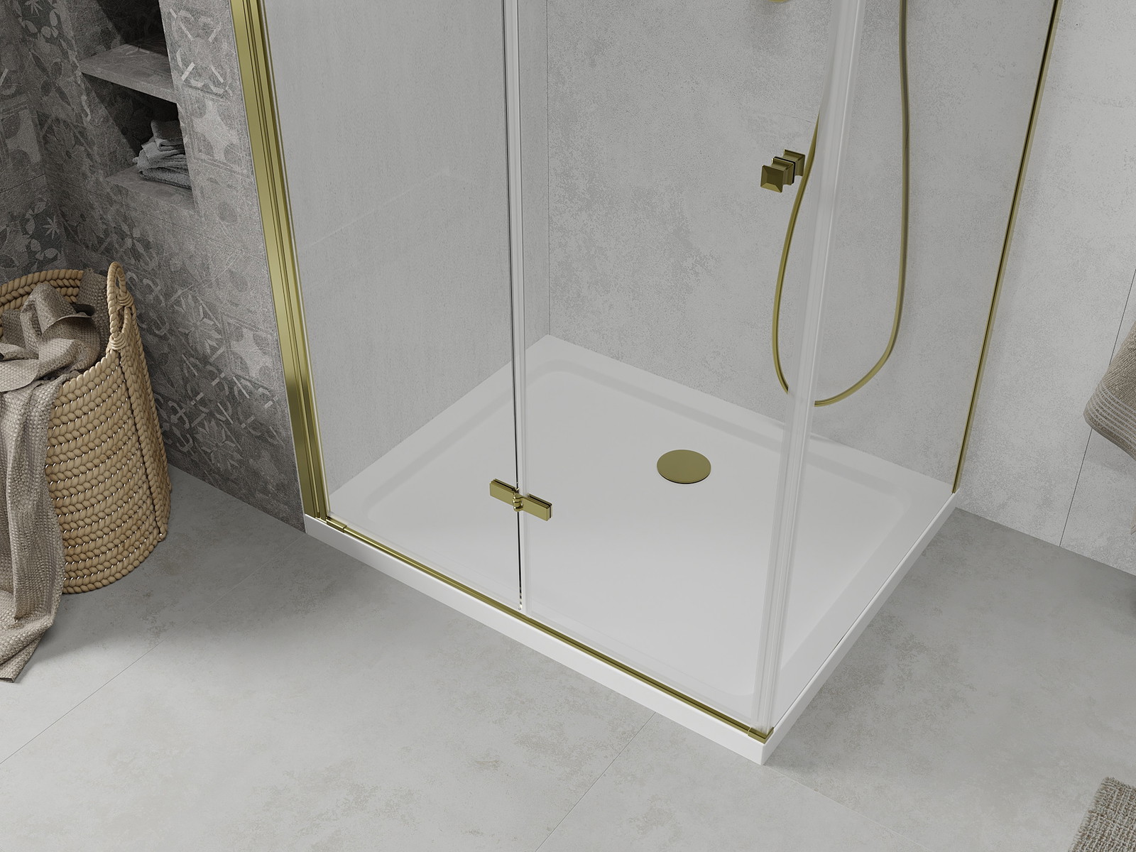Mexen Lima sulankstoma dušo kabina 90 x 80 cm, skaidri, aukso + plokščias padėklas - 856-090-080-50-00-4010