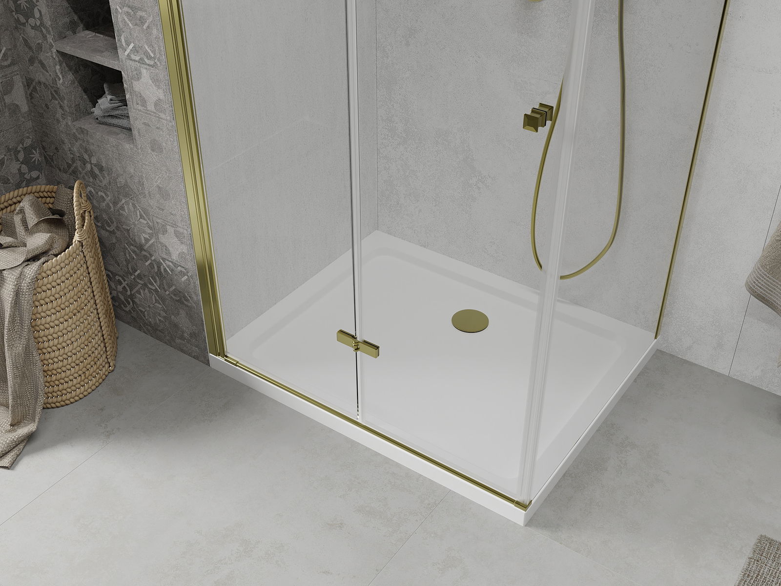 Mexen Lima sulankstoma dušo kabina 100 x 90 cm, permatoma, auksinė + dušo padėklas Flat - 856-100-090-50-00-4010