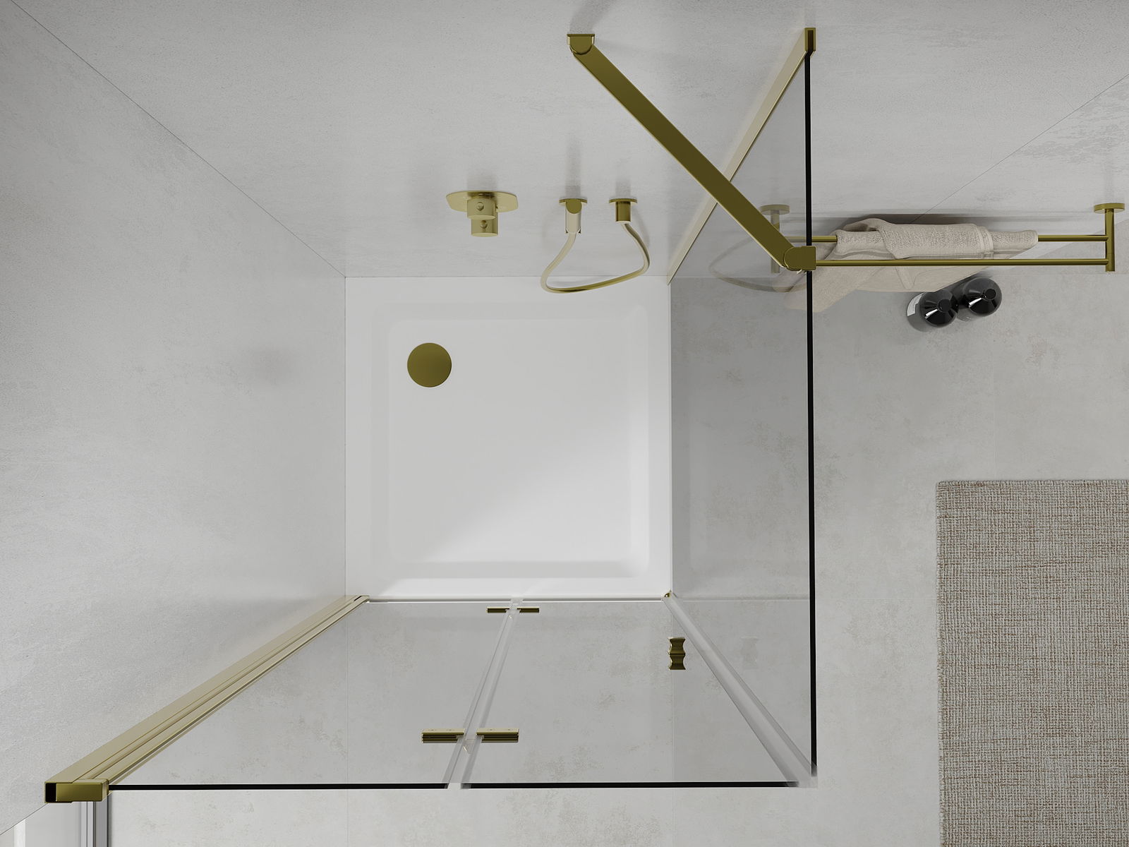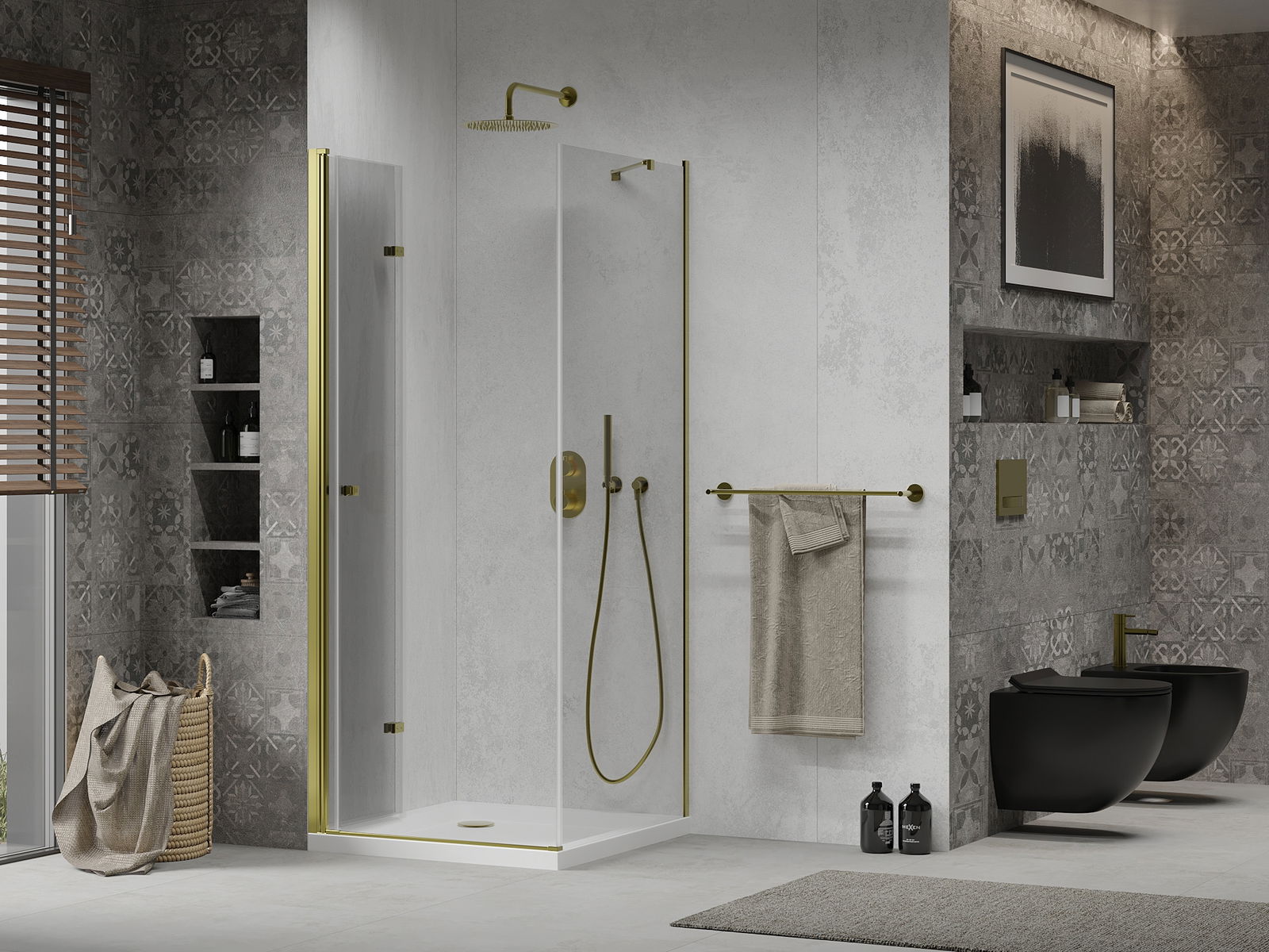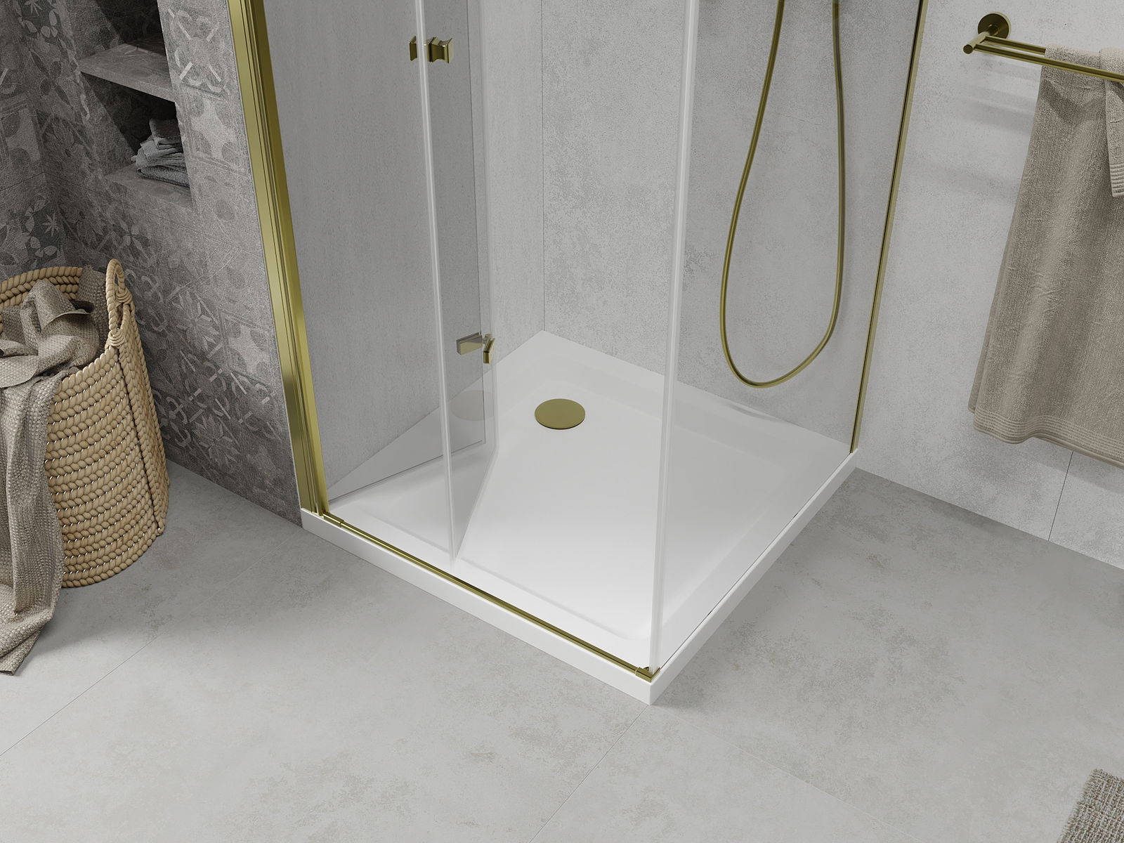 Mexen Lima sulankiojama dušo kabina 100 x 100 cm, skaidri, auksinė + plokščias padas - 856-100-100-50-00-4010