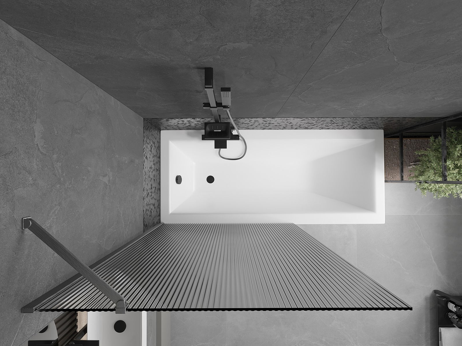 Mexen Next vonios širmos 1-durės 100 x 150 cm, juostos, ginklinės pilkos matinės - 895-100-000-00-09-66