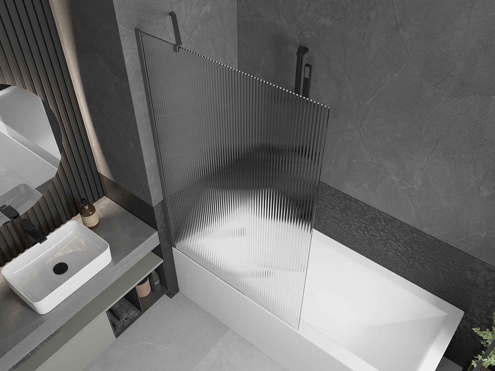Mexen Next viengubis vonios ekranas 100 x 150 cm, juostelės, gun metal - 895-100-000-00-09-95