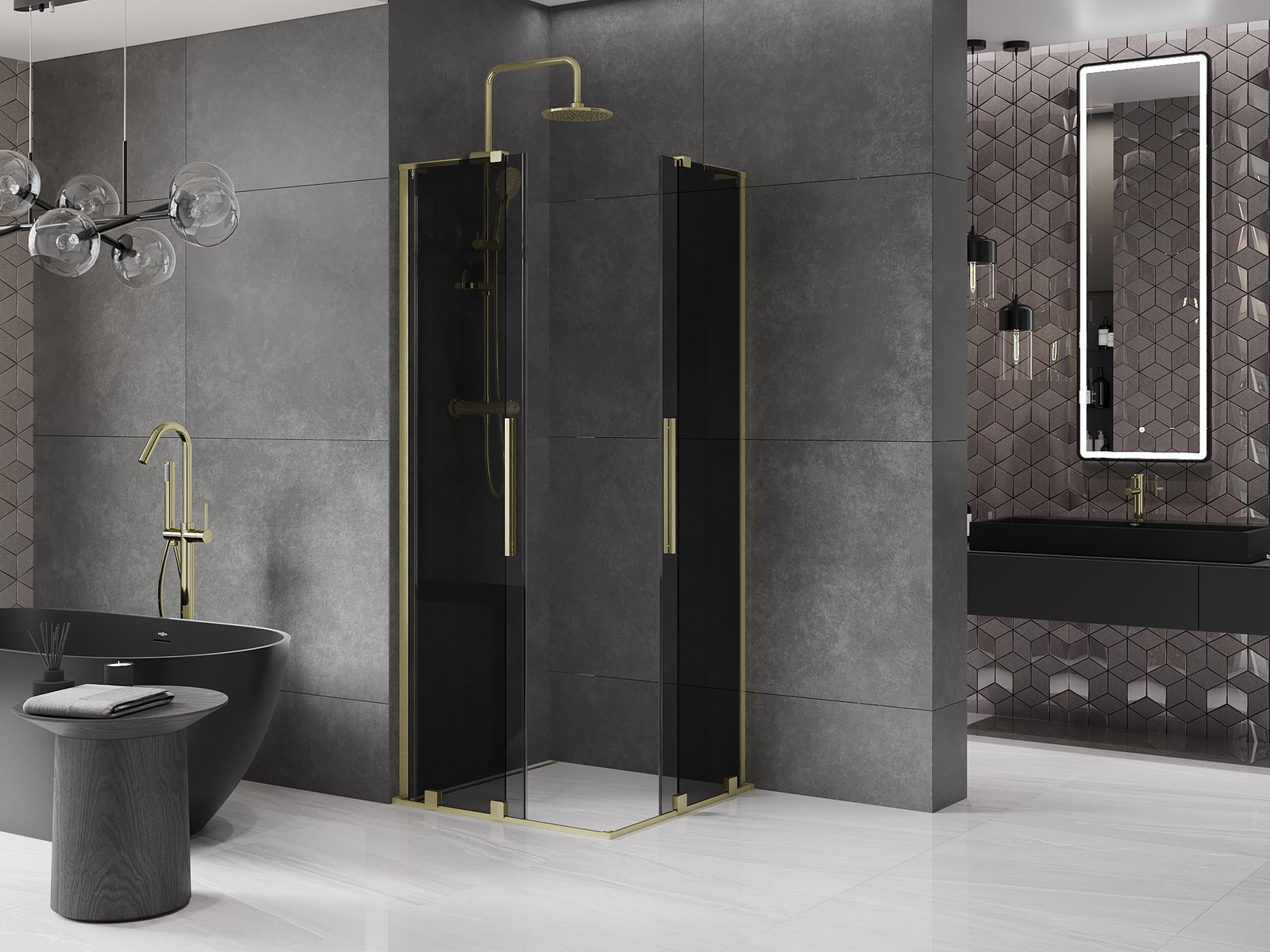Mexen Velar L Duo stumdomoje dušo kabina 90 x 90 cm, grafito, aukso šlifuota - 871-090-090-02-43-55