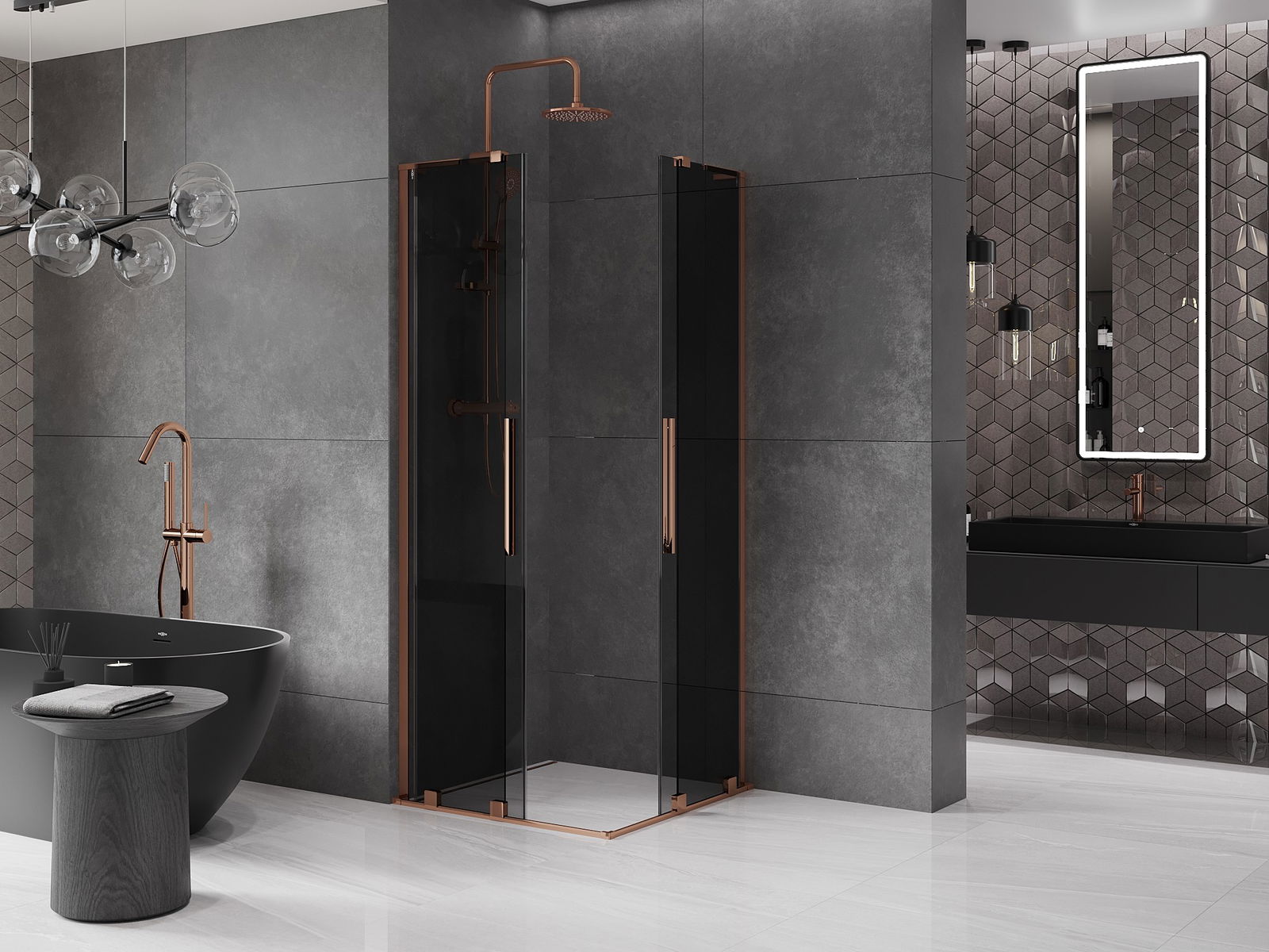 Mexen Velar L Duo stumdomas dušo kabina 80 x 80 cm, grafitas, rožinis auksas - 871-080-080-02-43-60
