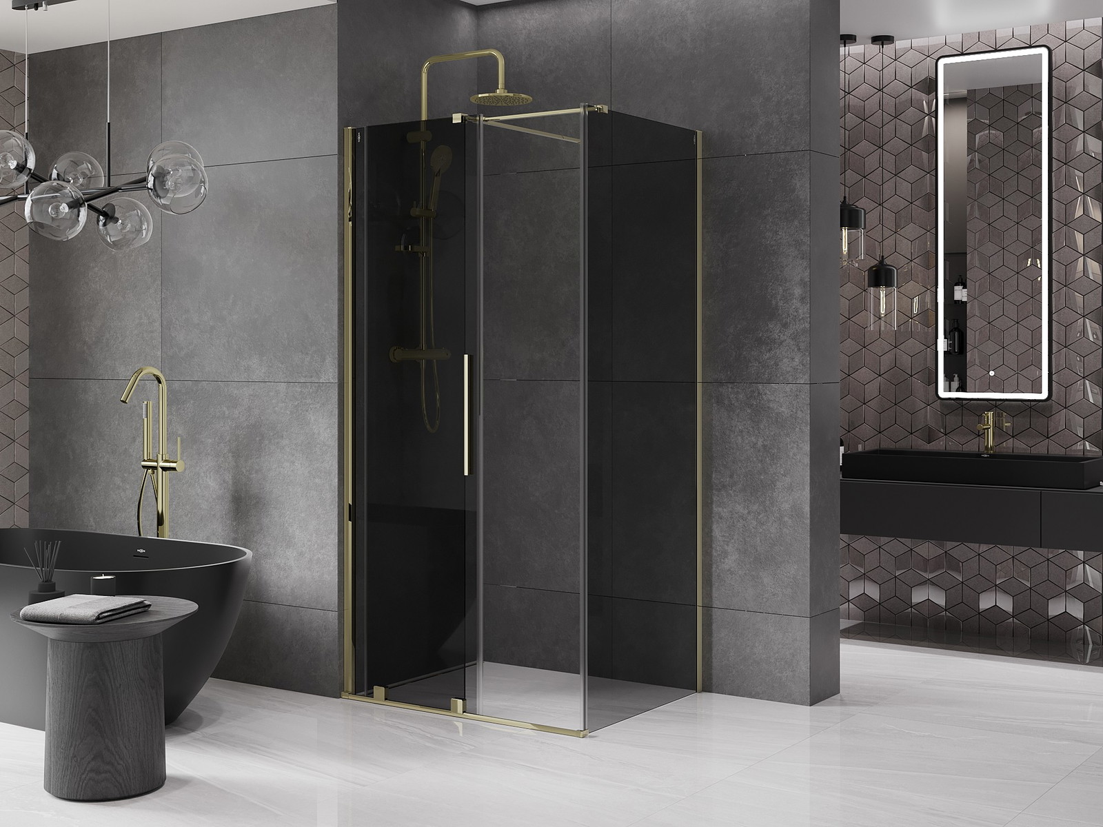 Mexen Velar stumdomas dušo kabina 90 x 70 cm, grafitas, auksinis - 871-090-070-41-50