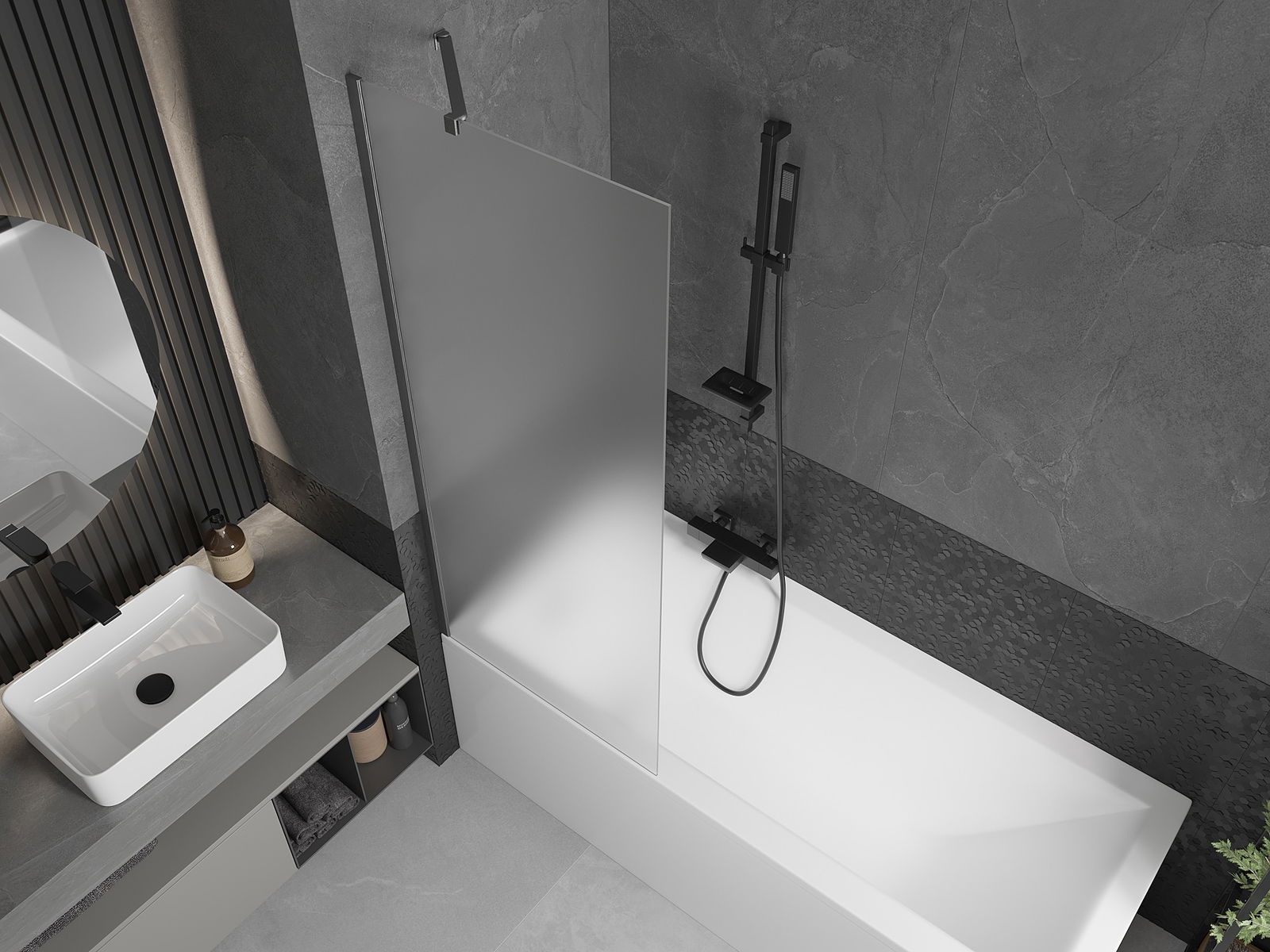 Efektyvi apsauga nuo vandens išsiliejimo maudymosi metu. Sienelė turi tarpines, kurios idealiai priglunda prie stiklo paviršiaus ir vonios krašto. Funkcionalus sprendimas, užtikrinantis saugumą ir lengvą švaros palaikymą.