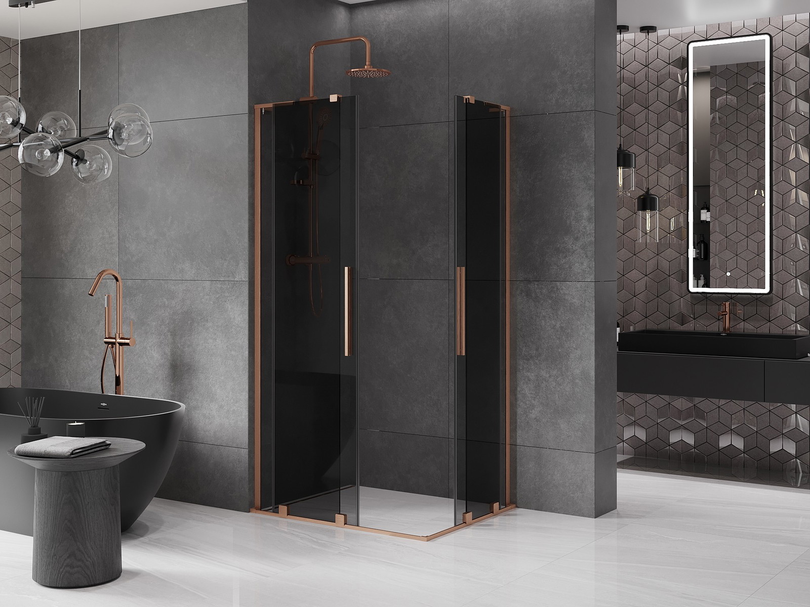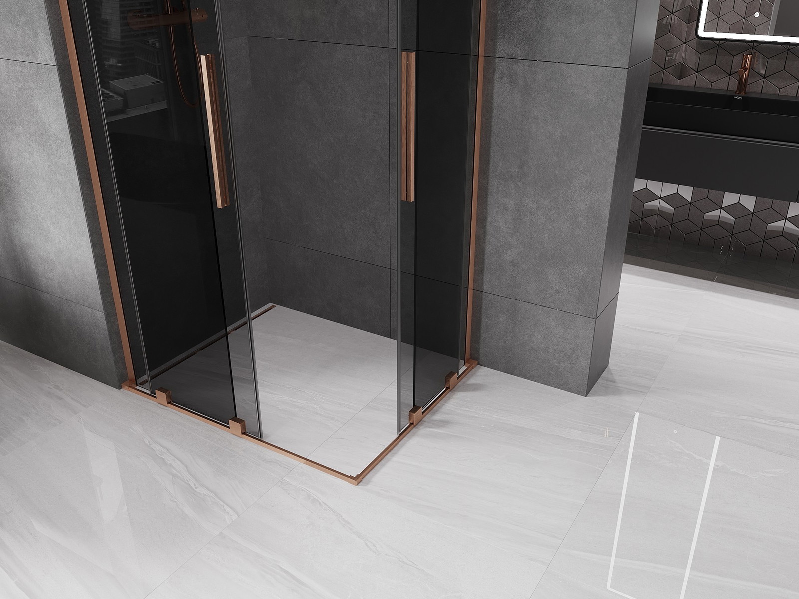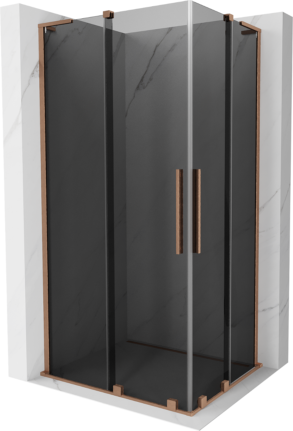 Mexen Velar L Duo stumdoma dušo kabina 100 x 90 cm, grafitas, šlifuota varis - 871-100-090-02-43-65