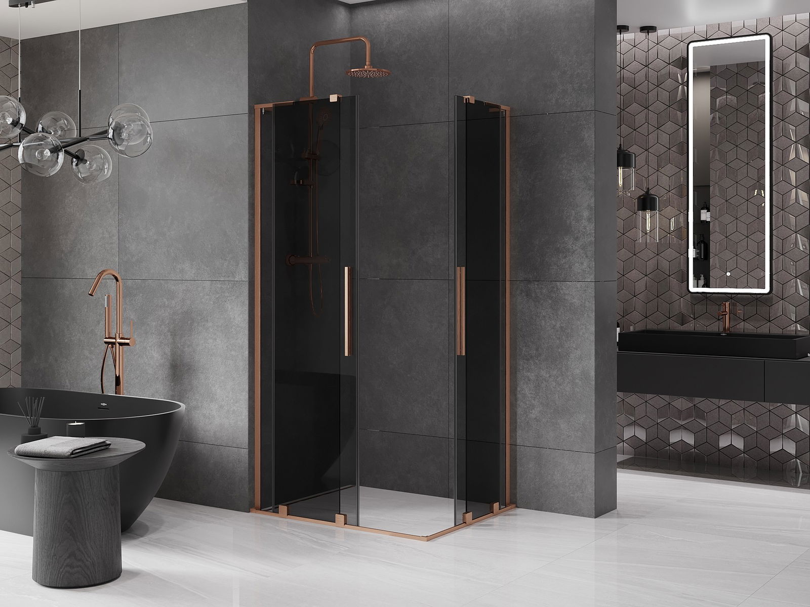 Mexen Velar L Duo stumdomas dušo kabina 100 x 90 cm, grafitas, šlifuota varis - 871-100-090-02-43-65