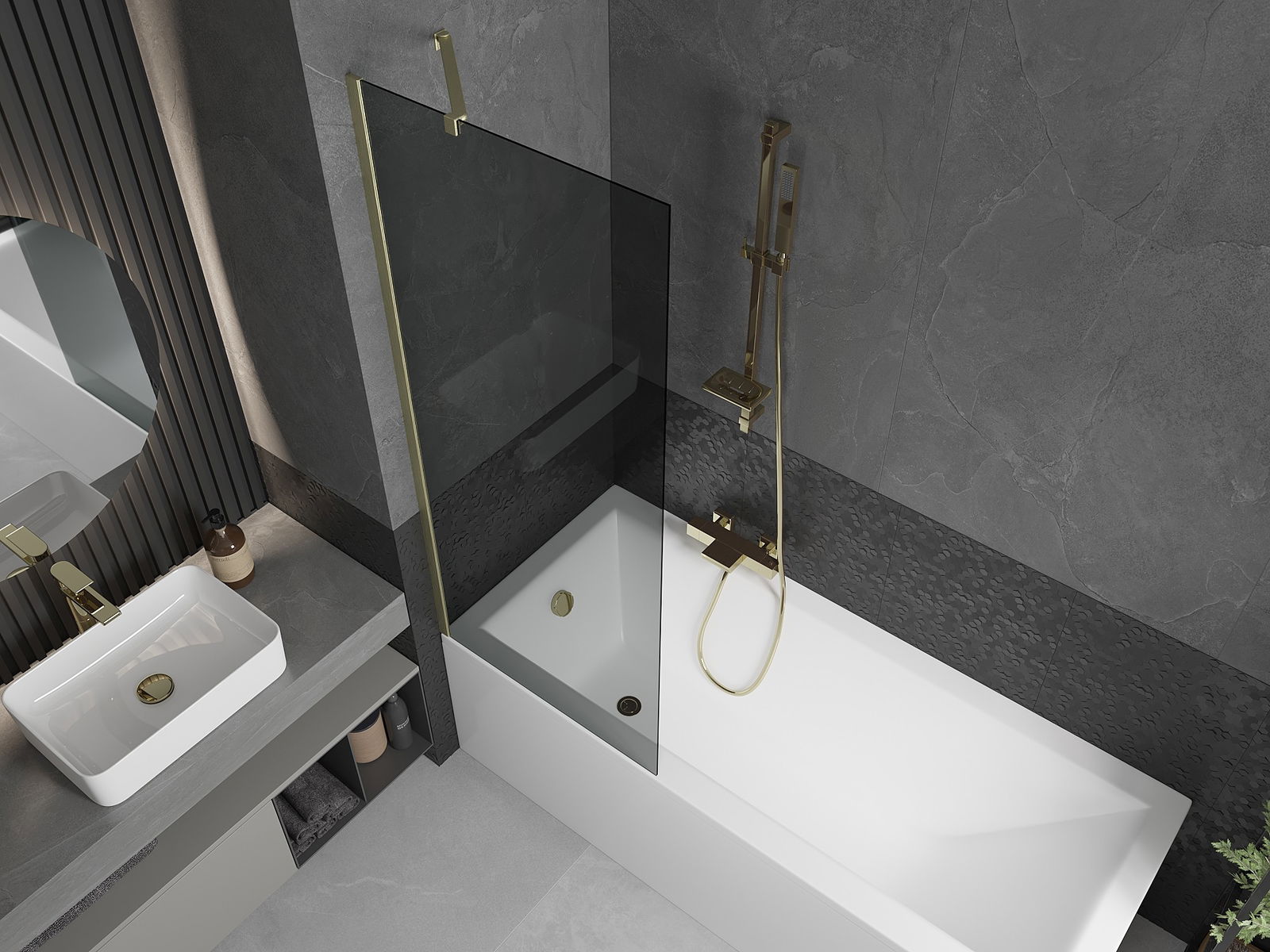 Mexen Next vonios sienelė vienasparnė 70 x 150 cm, grafitas, šlifuotas auksas - 895-070-000-00-40-55