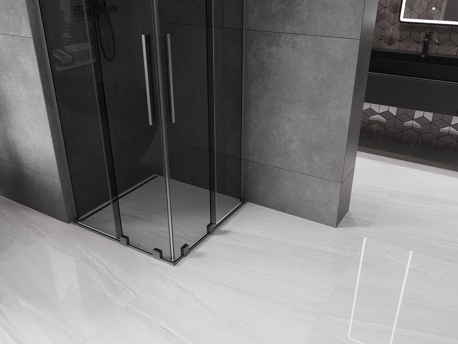 Mexen Velar L Dviguba dušo kabina su slankiojančiomis durimis 90 x 90 cm, grafito spalva, pilkai matinė