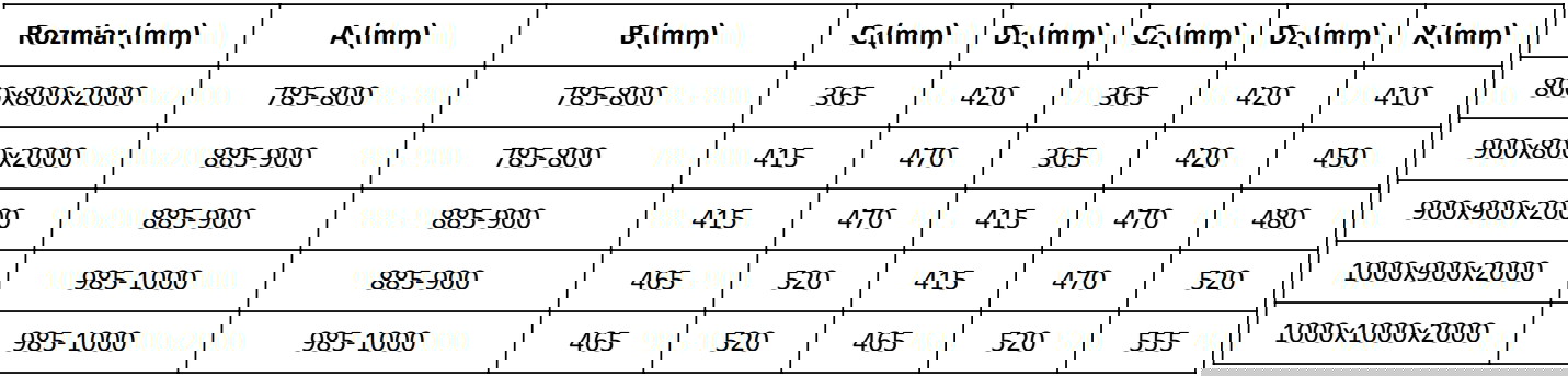 Dušo kabinos, durys ir sienelės yra standartiškai pritaikytos montuoti ant nustatytų matmenų dušo padėklų. Būtent šie matmenys nurodomi gaminio pavadinime arba aprašyme. Tačiau atkreipkite dėmesį, kad faktiniai elementų matmenys gali šiek tiek skirtis nuo vardinių verčių. Planuojant montuoti tiesiai ant grindų, rekomenduojama atidžiai patikrinti išorinius matmenis ir elementų išdėstymą pagal techninį brėžinį.