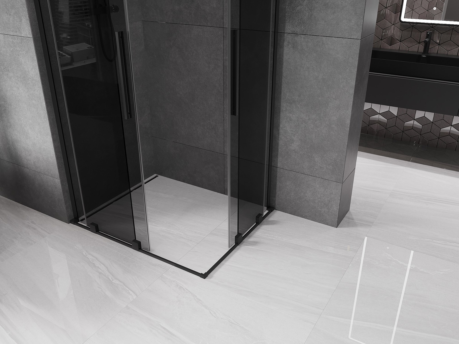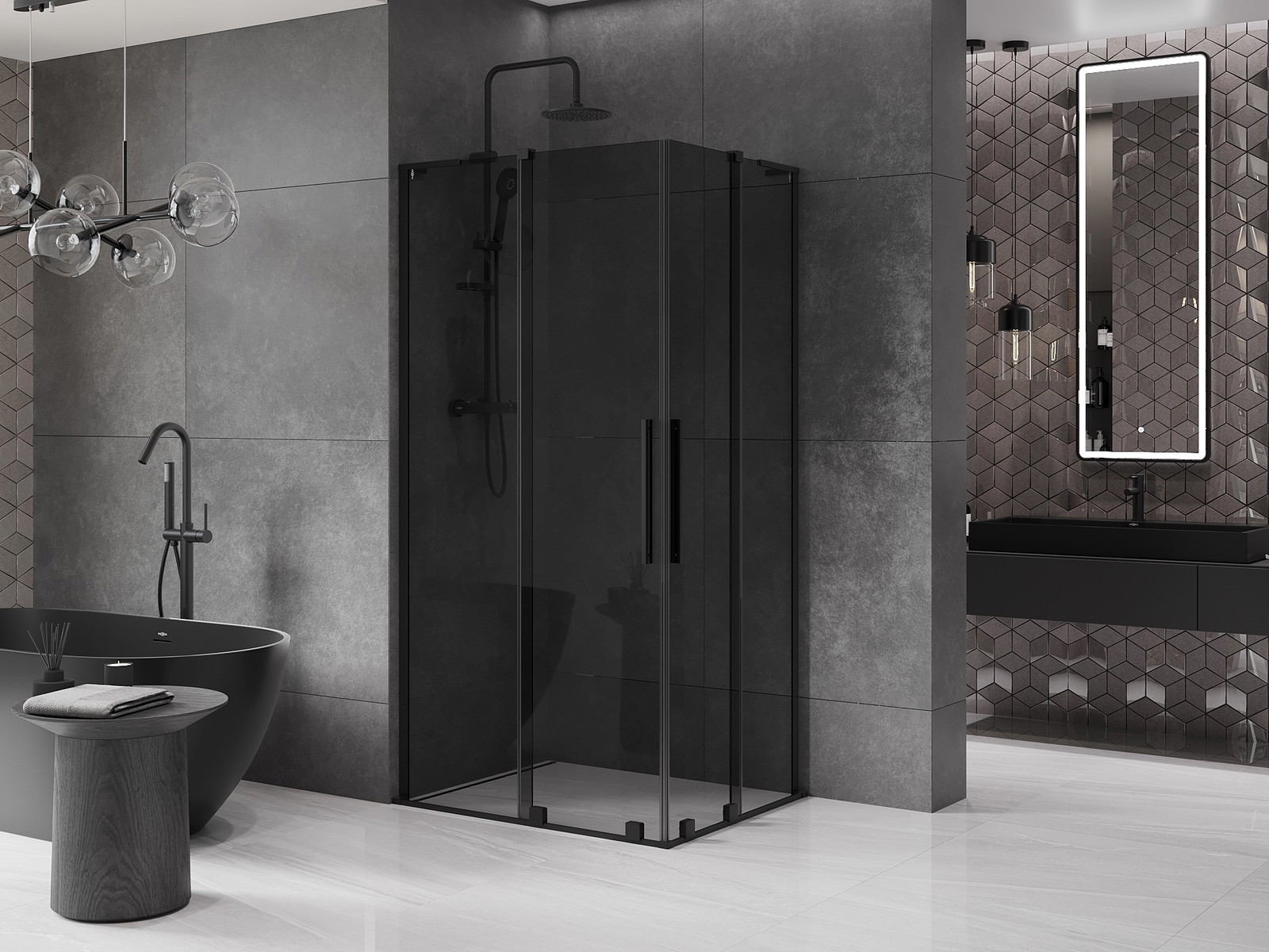 Mexen Velar L Dviguba stumdoma dušo kabina 90 x 80 cm, grafito, juoda - 871-090-080-02-43-70